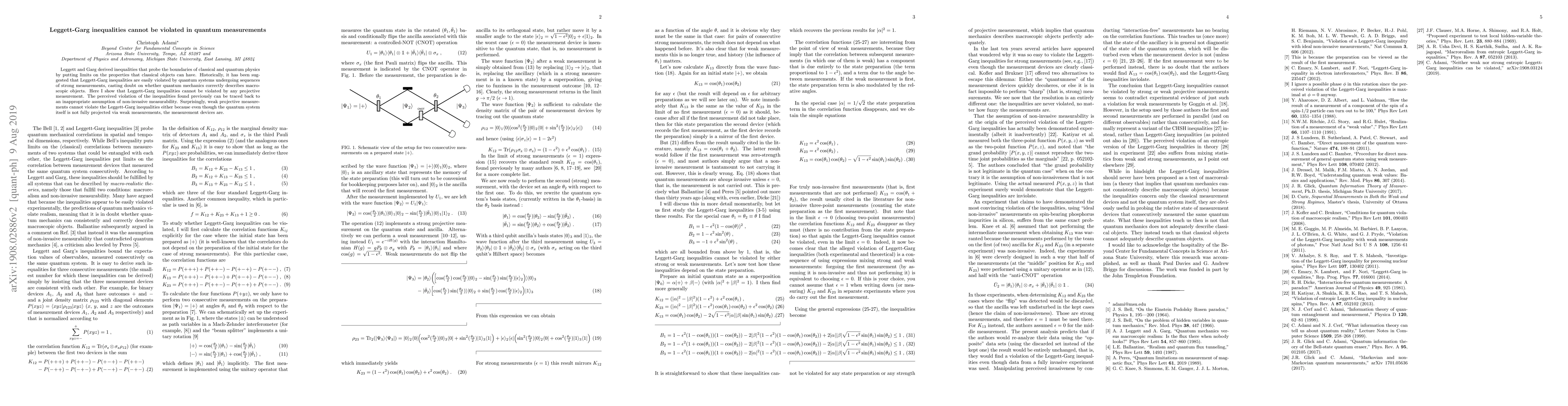 Leggett-Garg inequalities, which test the limits between classical and quantum physics, cannot be violated by any projective measurement, refuting previous claims of violations due to inappropriate assumptions about non-invasive measurability. Even weak projective measurements uphold the inequalities because measurement devices remain fully projected.