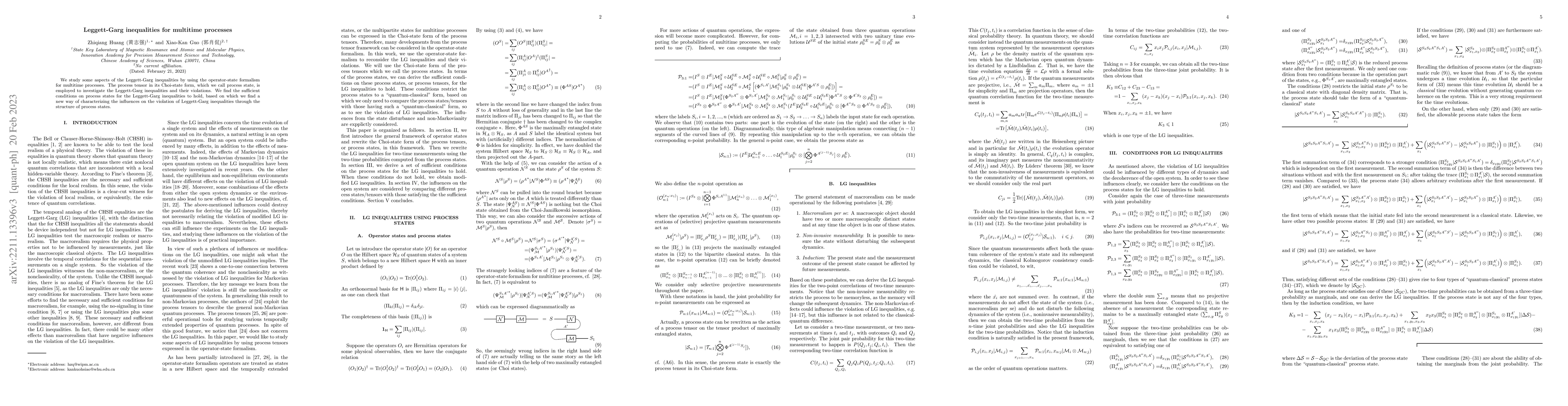 This paper investigates the Leggett-Garg inequalities in multitime processes using the operator-state formalism and process tensors. It identifies sufficient conditions for these inequalities to hold and proposes a new method to characterize their violations based on the structure of process states.