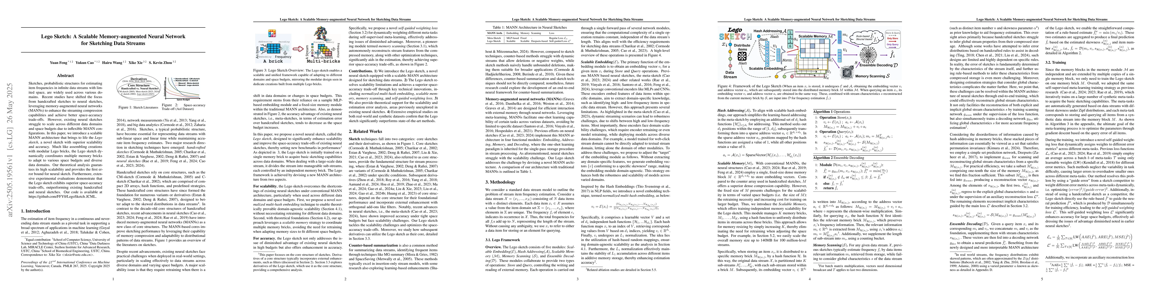 Researchers introduced a new memory-augmented neural network architecture called Lego Sketch, which improves scalability and accuracy of neural sketches for estimating item frequencies in data streams. It outperforms existing handcrafted and neural sketches in terms of space-accuracy trade-offs.