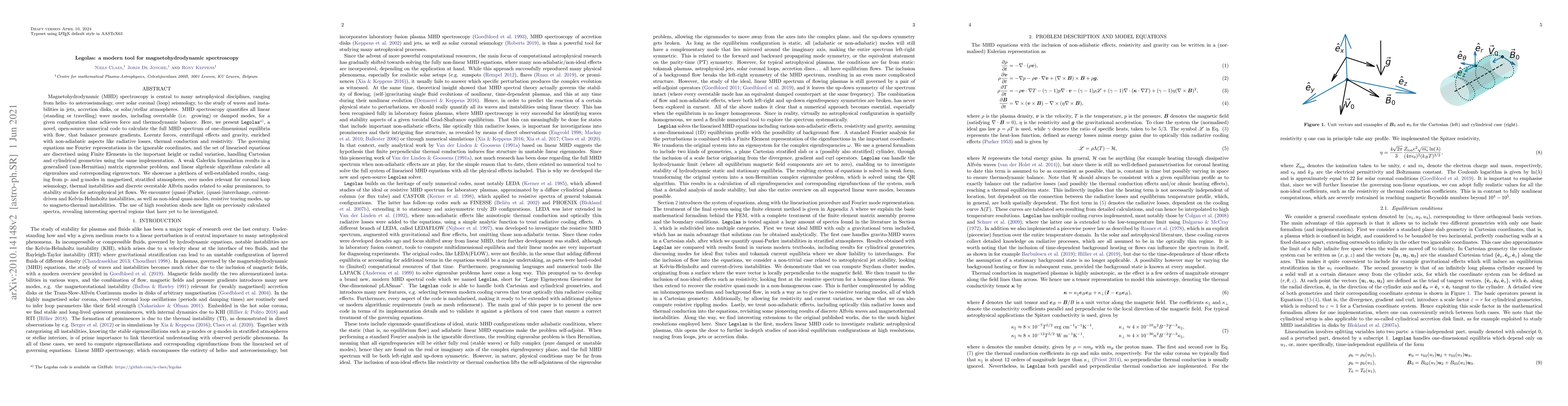 A new tool called Legolas calculates the full magnetohydrodynamic spectrum of one-dimensional equilibria with flow, revealing previously unseen spectral regions in astrophysical phenomena like solar prominences and jets.