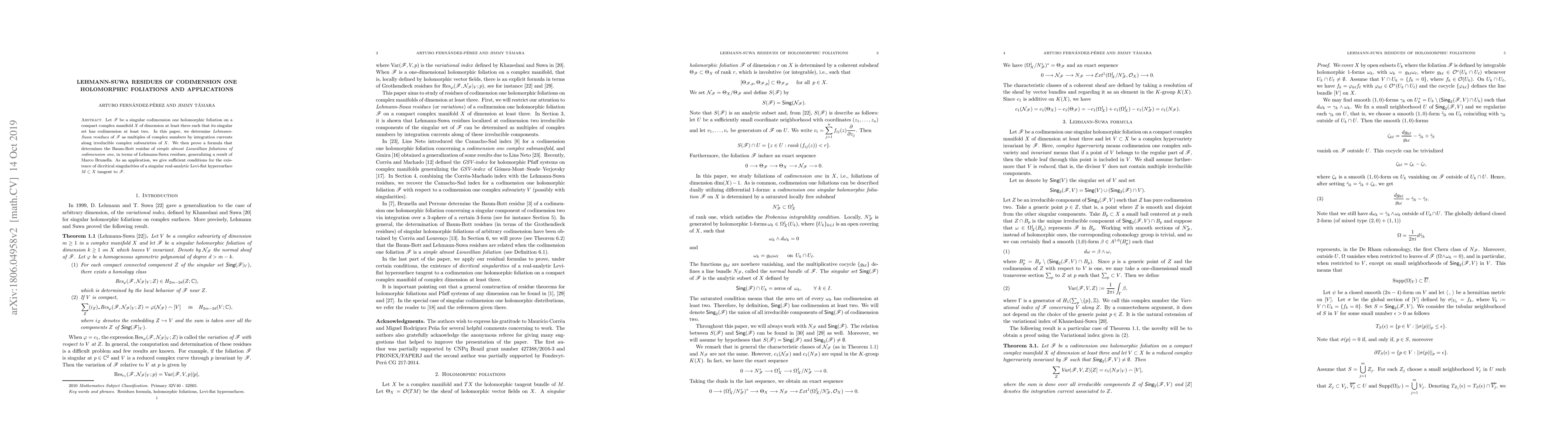 This paper determines Lehmann-Suwa residues for codimension one holomorphic foliations on complex manifolds via integration currents, and generalizes a result for Baum-Bott residues. An application includes conditions for the existence of dicritical singularities in real-analytic Levi-flat hypersurfaces tangent to these foliations.