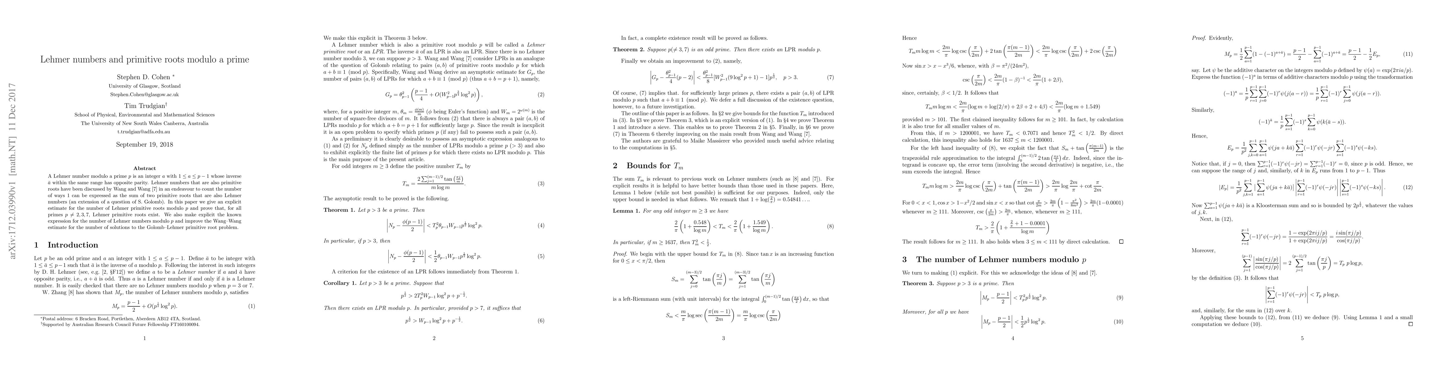 A Lehmer number modulo a prime $p$ is an integer $a$ with $1 \leq a \leq p-1$ whose inverse $\bar{a}$ within the same range has opposite parity. Lehmer numbers that are also primitive roots have been discussed by Wang and Wang in an endeavour to count the number of ways $1$ can be expressed as the sum of two primitive roots that are also Lehmer numbers (an extension of a question of S. Golomb). In this paper we give an explicit estimate for the number of Lehmer primitive roots modulo $p$ and prove that, for all primes $p \neq 2,3,7$, Lehmer primitive roots exist. We also make explicit the known expression for the number of Lehmer numbers modulo $p$ and improve the Wang--Wang estimate for the number of solutions to the Golomb--Lehmer primitive root problem.