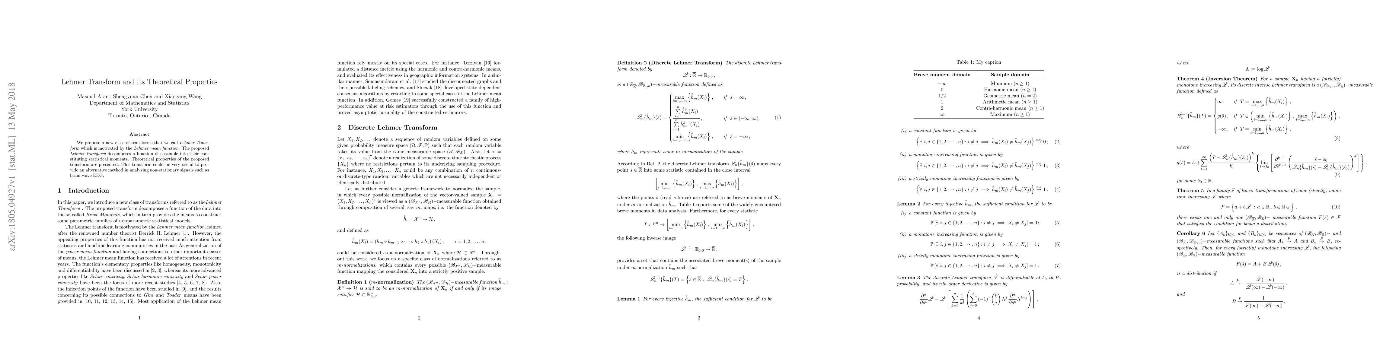We propose a new class of transforms that we call {\it Lehmer Transform} which is motivated by the {\it Lehmer mean function}. The proposed {\it Lehmer transform} decomposes a function of a sample into their constituting statistical moments. Theoretical properties of the proposed transform are presented. This transform could be very useful to provide an alternative method in analyzing non-stationary signals such as brain wave EEG.