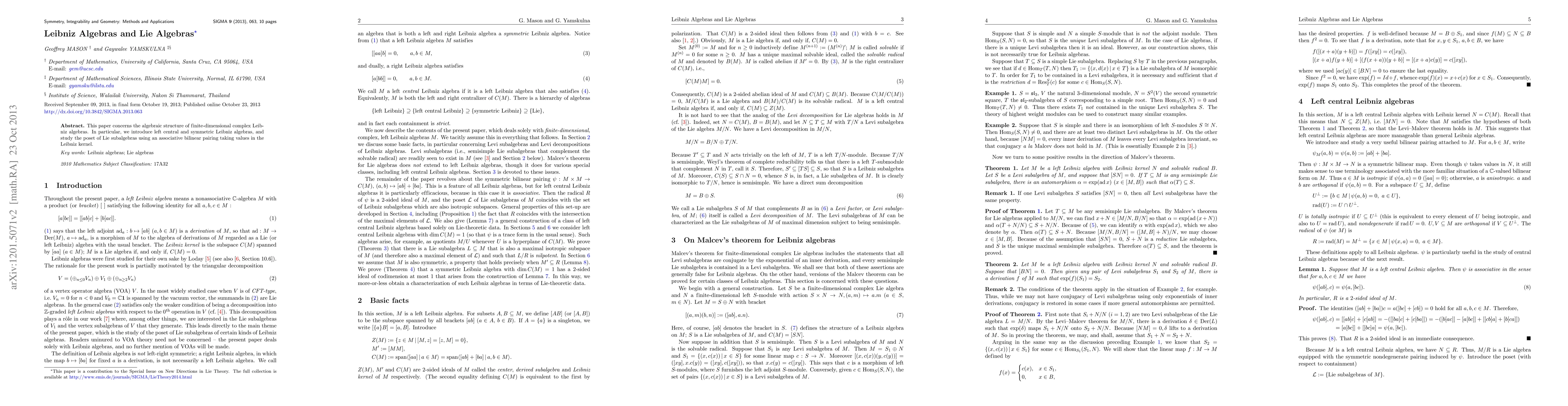 Researchers studied finite-dimensional complex Leibniz algebras, introducing new concepts like left central and symmetric Leibniz algebras and analyzing their Lie subalgebras.