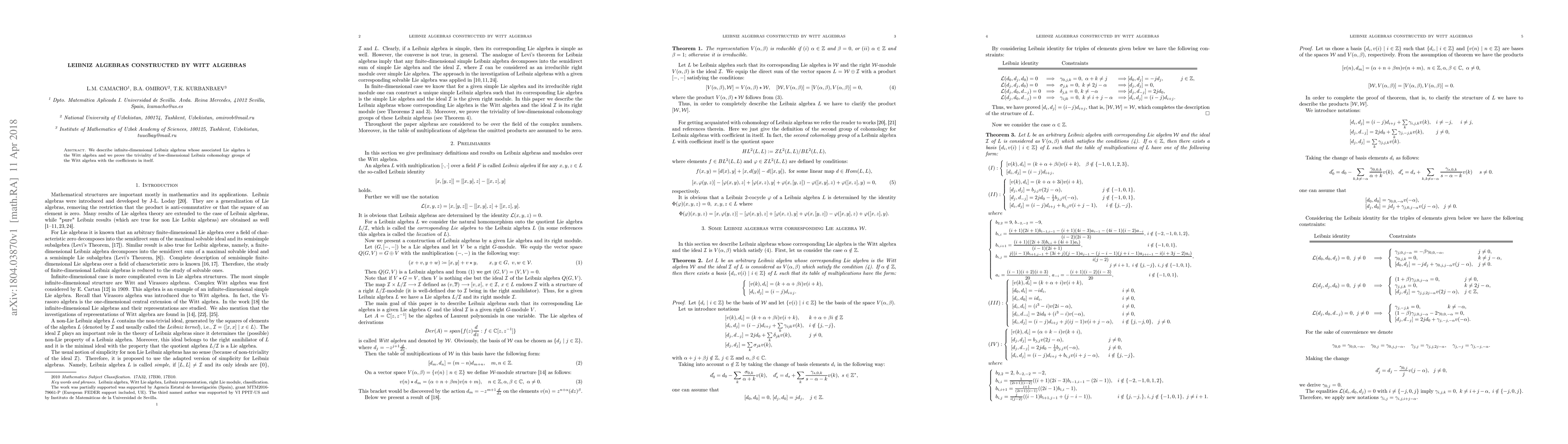This paper constructs infinite-dimensional Leibniz algebras linked to the Witt algebra and demonstrates that the low-dimensional Leibniz cohomology groups of the Witt algebra with self-coefficients are trivial.