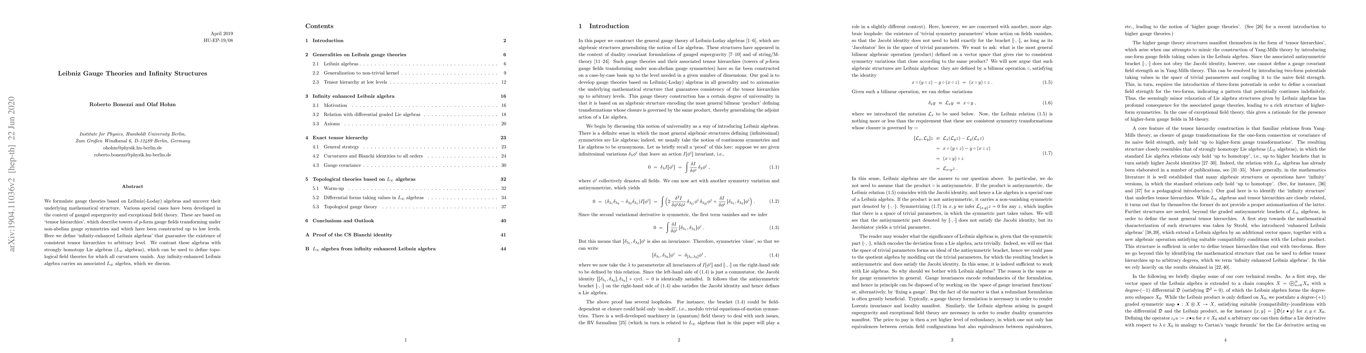 We formulate gauge theories based on Leibniz(-Loday) algebras and uncover their underlying mathematical structure. Various special cases have been developed in the context of gauged supergravity and exceptional field theory. These are based on `tensor hierarchies', which describe towers of $p$-form gauge fields transforming under non-abelian gauge symmetries and which have been constructed up to low levels. Here we define `infinity-enhanced Leibniz algebras' that guarantee the existence of consistent tensor hierarchies to arbitrary level. We contrast these algebras with strongly homotopy Lie algebras ($L_{\infty}$ algebras), which can be used to define topological field theories for which all curvatures vanish. Any infinity-enhanced Leibniz algebra carries an associated $L_{\infty}$ algebra, which we discuss.