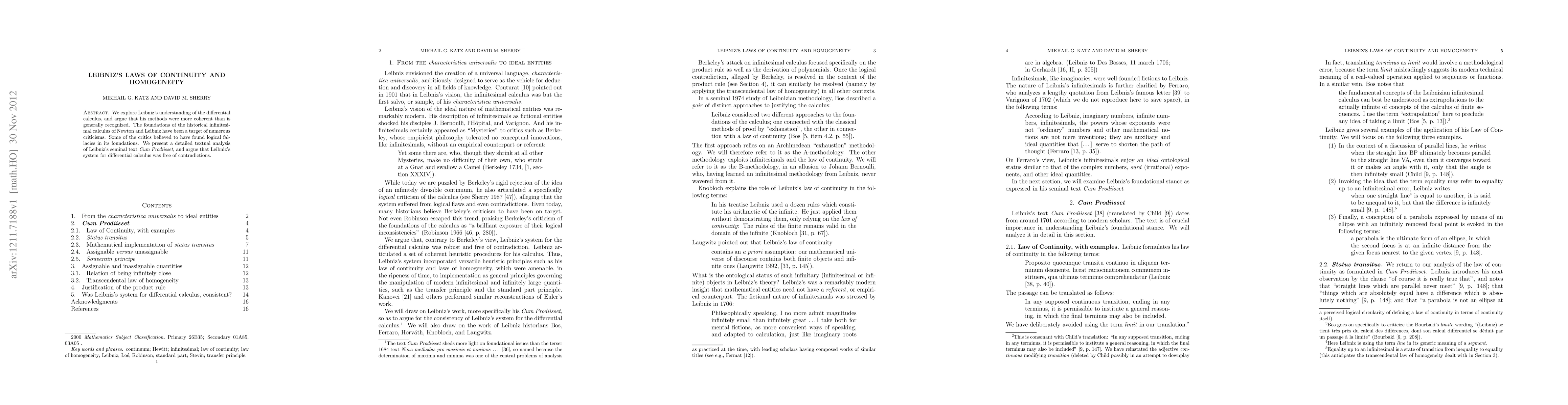 We explore Leibniz's understanding of the differential calculus, and argue that his methods were more coherent than is generally recognized. The foundations of the historical infinitesimal calculus of Newton and Leibniz have been a target of numerous criticisms. Some of the critics believed to have found logical fallacies in its foundations. We present a detailed textual analysis of Leibniz's seminal text Cum Prodiisset, and argue that Leibniz's system for differential calculus was free of contradictions.