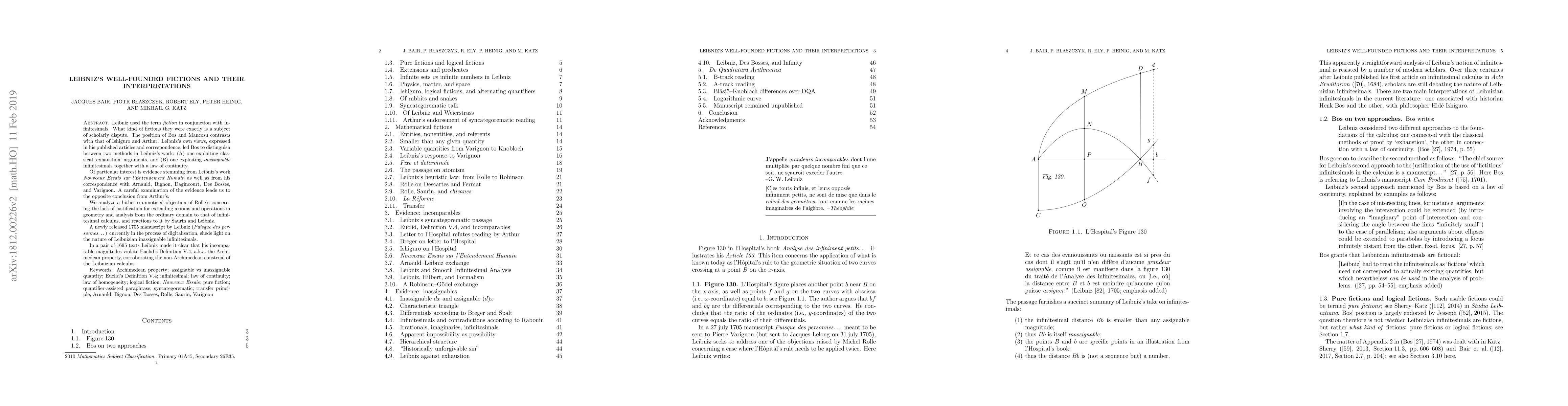 Leibniz used the term fiction in conjunction with infinitesimals. What kind of fictions they were exactly is a subject of scholarly dispute. The position of Bos and Mancosu contrasts with that of Ishiguro and Arthur. Leibniz's own views, expressed in his published articles and correspondence, led Bos to distinguish between two methods in Leibniz's work: (A) one exploiting classical `exhaustion' arguments, and (B) one exploiting inassignable infinitesimals together with a law of continuity. Of particular interest is evidence stemming from Leibniz's work Nouveaux Essais sur l'Entendement Humain as well as from his correspondence with Arnauld, Bignon, Dagincourt, Des Bosses, and Varignon. A careful examination of the evidence leads us to the opposite conclusion from Arthur's. We analyze a hitherto unnoticed objection of Rolle's concerning the lack of justification for extending axioms and operations in geometry and analysis from the ordinary domain to that of infinitesimal calculus, and reactions to it by Saurin and Leibniz. A newly released 1705 manuscript by Leibniz (Puisque des personnes...) currently in the process of digitalisation, sheds light on the nature of Leibnizian inassignable infinitesimals. In a pair of 1695 texts Leibniz made it clear that his incomparable magnitudes violate Euclid's Definition V.4, a.k.a. the Archimedean property, corroborating the non-Archimedean construal of the Leibnizian calculus. Keywords: Archimedean property; assignable vs inassignable quantity; Euclid's Definition V.4; infinitesimal; law of continuity; law of homogeneity; logical fiction; Nouveaux Essais; pure fiction; quantifier-assisted paraphrase; syncategorematic; transfer principle; Arnauld; Bignon; Des Bosses; Rolle; Saurin; Varignon
