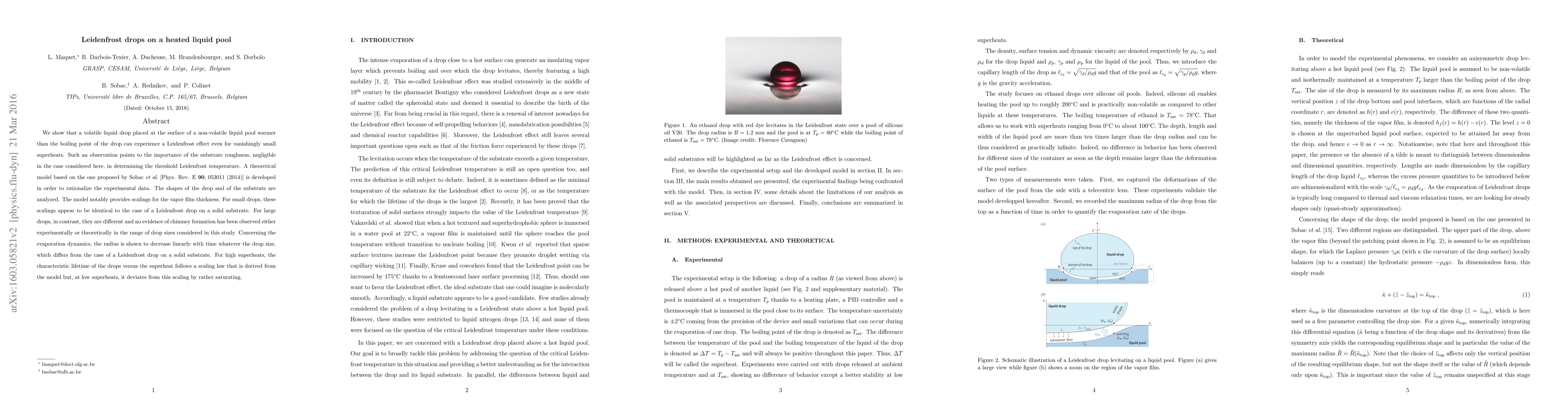 This paper investigates the Leidenfrost effect in volatile liquid drops on a heated non-volatile liquid pool, finding it occurs even with minimal superheats. A theoretical model rationalizes experimental observations, revealing that vapor film thickness scalings differ for large versus small drops, and the evaporation dynamics vary from those on solid substrates.