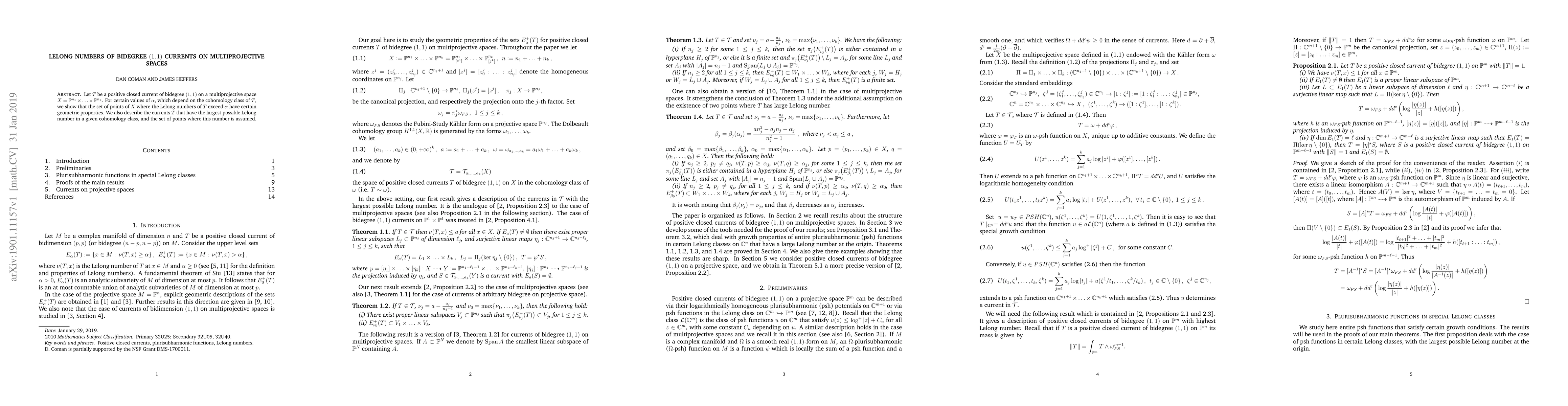 This paper investigates positive closed bidegree (1,1) currents on multiprojective spaces, demonstrating that for specific values of $\alpha$ tied to the cohomology class, the points where the Lelong numbers surpass $\alpha$ exhibit particular geometric characteristics. It also identifies currents with the highest possible Lelong numbers within a given cohomology class and specifies where these maxima occur.