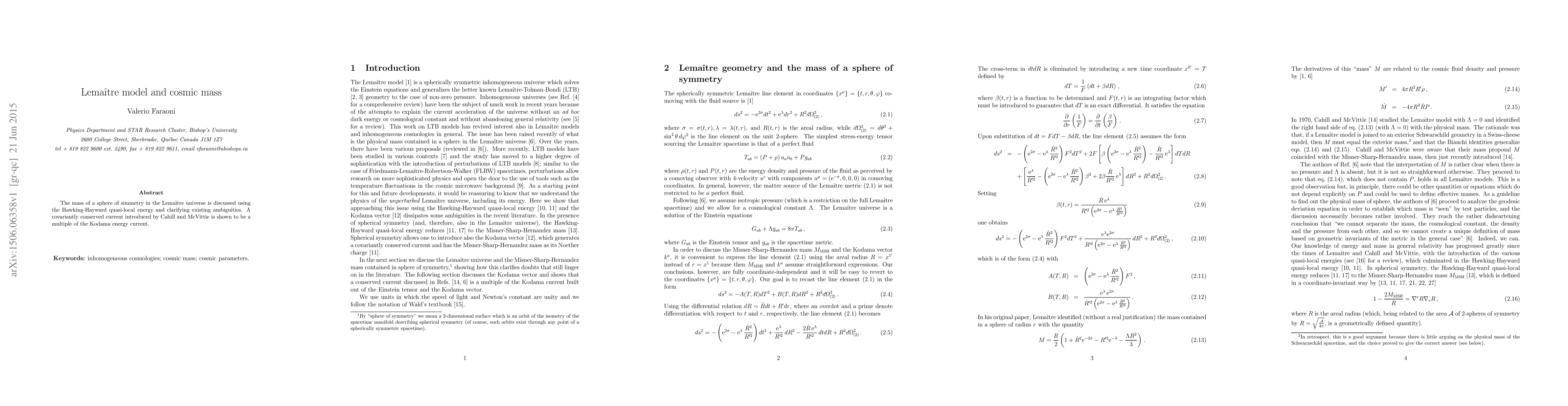 The mass of a sphere of simmetry in the Lemaitre universe is discussed using the Hawking-Hayward quasi-local energy and clarifying existing ambiguities. A covariantly conserved current introduced by Cahill and McVittie is shown to be a multiple of the Kodama energy current.