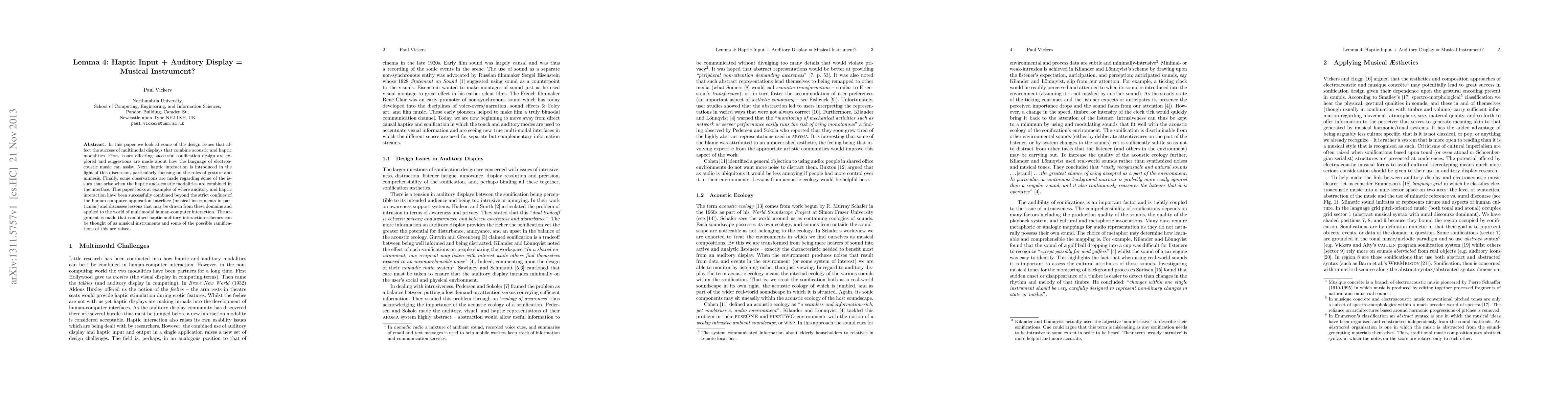 In this paper we look at some of the design issues that affect the success of multimodal displays that combine acoustic and haptic modalities. First, issues affecting successful sonification design are explored and suggestions are made about how the language of electroacoustic music can assist. Next, haptic interaction is introduced in the light of this discussion, particularly focusing on the roles of gesture and mimesis. Finally, some observations are made regarding some of the issues that arise when the haptic and acoustic modalities are combined in the interface. This paper looks at examples of where auditory and haptic interaction have been successfully combined beyond the strict confines of the human-computer application interface (musical instruments in particular) and discusses lessons that may be drawn from these domains and applied to the world of multimodal human-computer interaction. The argument is made that combined haptic-auditory interaction schemes can be thought of as musical instruments and some of the possible ramifications of this are raised.