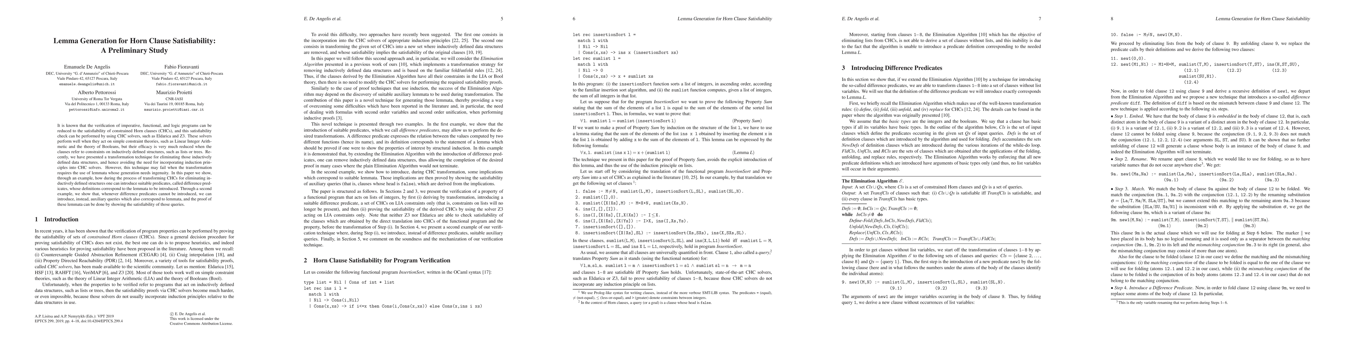 Researchers present a method to generate lemmata for Horn Clause Satisfiability that refers to inductively defined structures, improving the efficiency of CHC solvers.