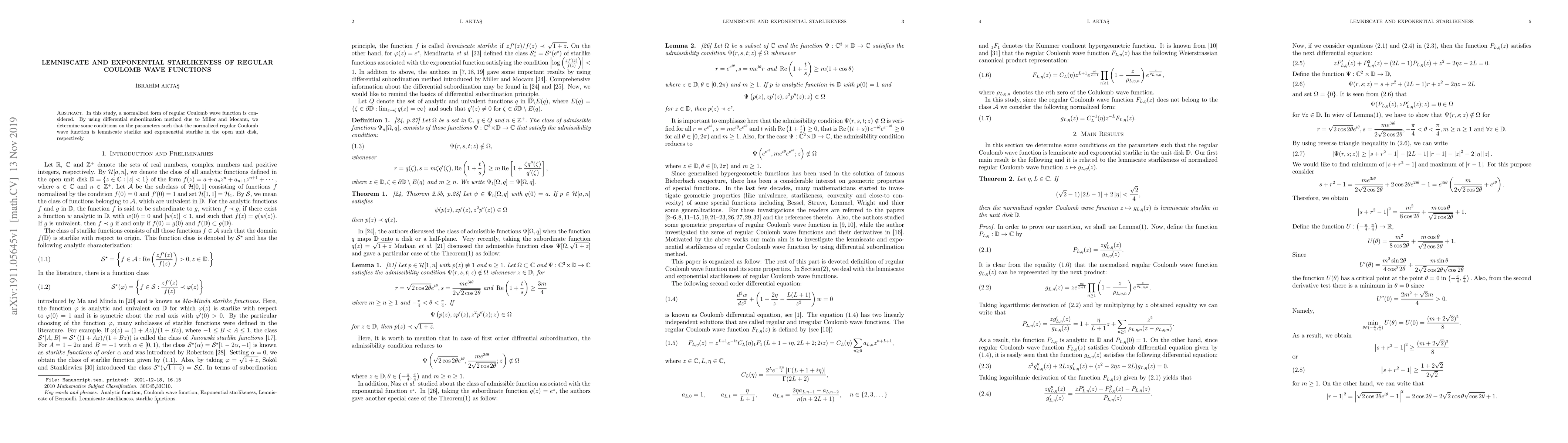 In this study, a normalized form of regular Coulomb wave function is considered. By using differential subordination method due to Miller and Mocanu, we determine some conditions on the parameters such that the normalized regular Coulomb wave function is lemniscate starlike and exponenetial starlike in the open unit disk, respectively.