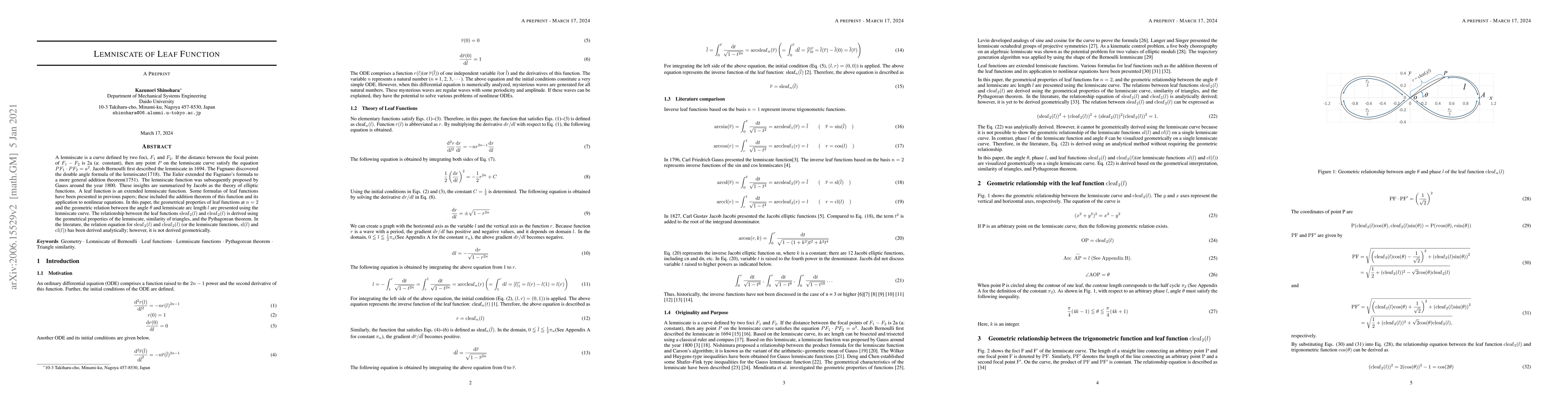 The paper presents a geometric derivation of the relationship between leaf functions sleaf2(l) and cleaf2(l), extending the work on lemniscate functions initiated by Gauss.