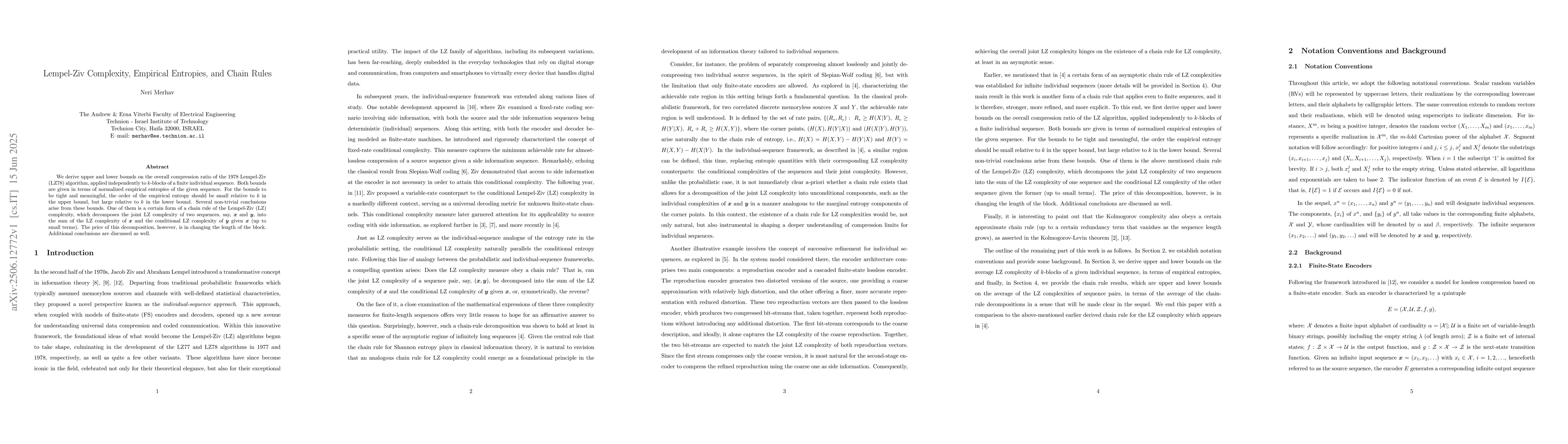 We derive upper and lower bounds on the overall compression ratio of the 1978 Lempel-Ziv (LZ78) algorithm, applied independently to $k$-blocks of a finite individual sequence. Both bounds are given in terms of normalized empirical entropies of the given sequence. For the bounds to be tight and meaningful, the order of the empirical entropy should be small relative to $k$ in the upper bound, but large relative to $k$ in the lower bound. Several non-trivial conclusions arise from these bounds. One of them is a certain form of a chain rule of the Lempel-Ziv (LZ) complexity, which decomposes the joint LZ complexity of two sequences, say, $\bx$ and $\by$, into the sum of the LZ complexity of $\bx$ and the conditional LZ complexity of $\by$ given $\bx$ (up to small terms). The price of this decomposition, however, is in changing the length of the block. Additional conclusions are discussed as well.