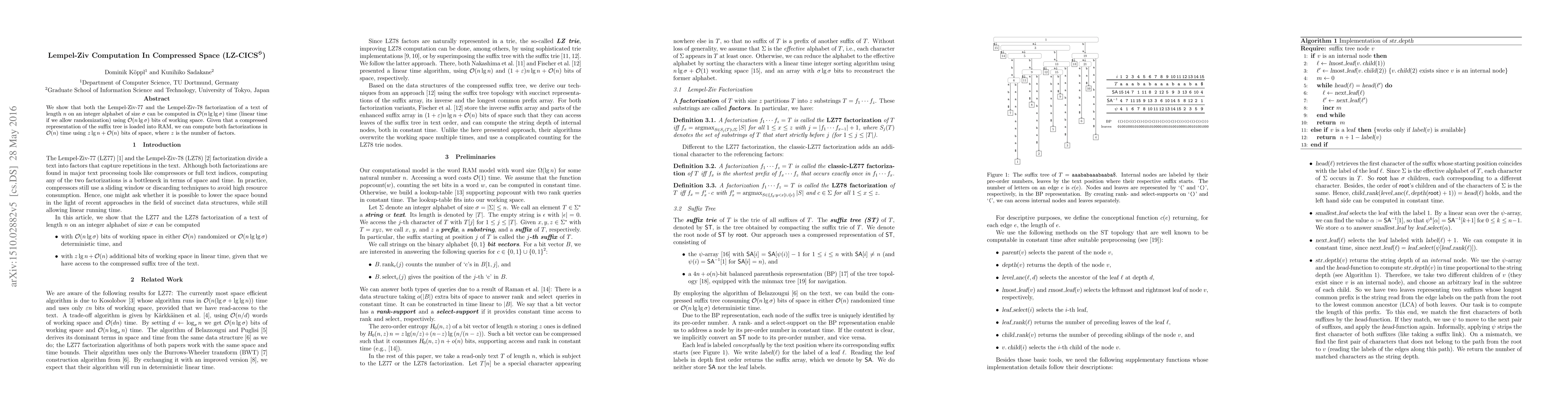 We show that both the Lempel Ziv 77- and the 78-factorization of a text of length $n$ on an integer alphabet of size $\sigma$ can be computed in $O(n \lg \lg \sigma)$ time (linear time if we allow randomization) using $O(n \lg \sigma)$ bits of working space. Given that a compressed representation of the suffix tree is loaded into RAM, we can compute both factorizations in $O(n)$ time using $z \lg n + O(n)$ bits of space, where $z$ is the number of factors.