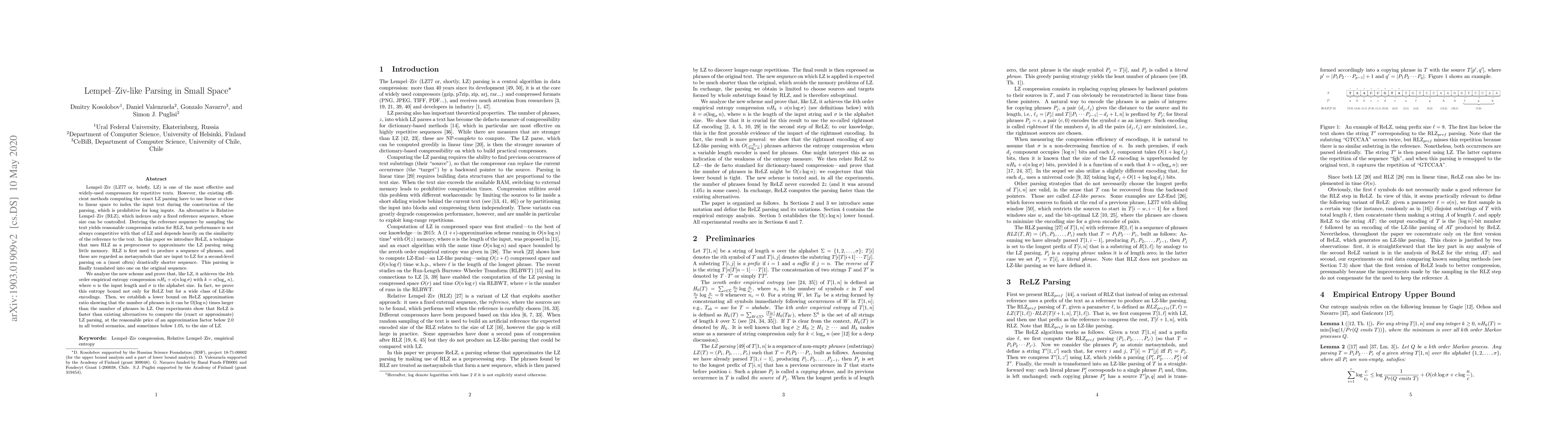Lempel-Ziv (LZ77 or, briefly, LZ) is one of the most effective and widely-used compressors for repetitive texts. However, the existing efficient methods computing the exact LZ parsing have to use linear or close to linear space to index the input text during the construction of the parsing, which is prohibitive for long inputs. An alternative is Relative Lempel-Ziv (RLZ), which indexes only a fixed reference sequence, whose size can be controlled. Deriving the reference sequence by sampling the text yields reasonable compression ratios for RLZ, but performance is not always competitive with that of LZ and depends heavily on the similarity of the reference to the text. In this paper we introduce ReLZ, a technique that uses RLZ as a preprocessor to approximate the LZ parsing using little memory. RLZ is first used to produce a sequence of phrases, and these are regarded as metasymbols that are input to LZ for a second-level parsing on a (most often) drastically shorter sequence. This parsing is finally translated into one on the original sequence. We analyze the new scheme and prove that, like LZ, it achieves the $k$th order empirical entropy compression $n H_k + o(n\log\sigma)$ with $k = o(\log_\sigma n)$, where $n$ is the input length and $\sigma$ is the alphabet size. In fact, we prove this entropy bound not only for ReLZ but for a wide class of LZ-like encodings. Then, we establish a lower bound on ReLZ approximation ratio showing that the number of phrases in it can be $\Omega(\log n)$ times larger than the number of phrases in LZ. Our experiments show that ReLZ is faster than existing alternatives to compute the (exact or approximate) LZ parsing, at the reasonable price of an approximation factor below $2.0$ in all tested scenarios, and sometimes below $1.05$, to the size of LZ.