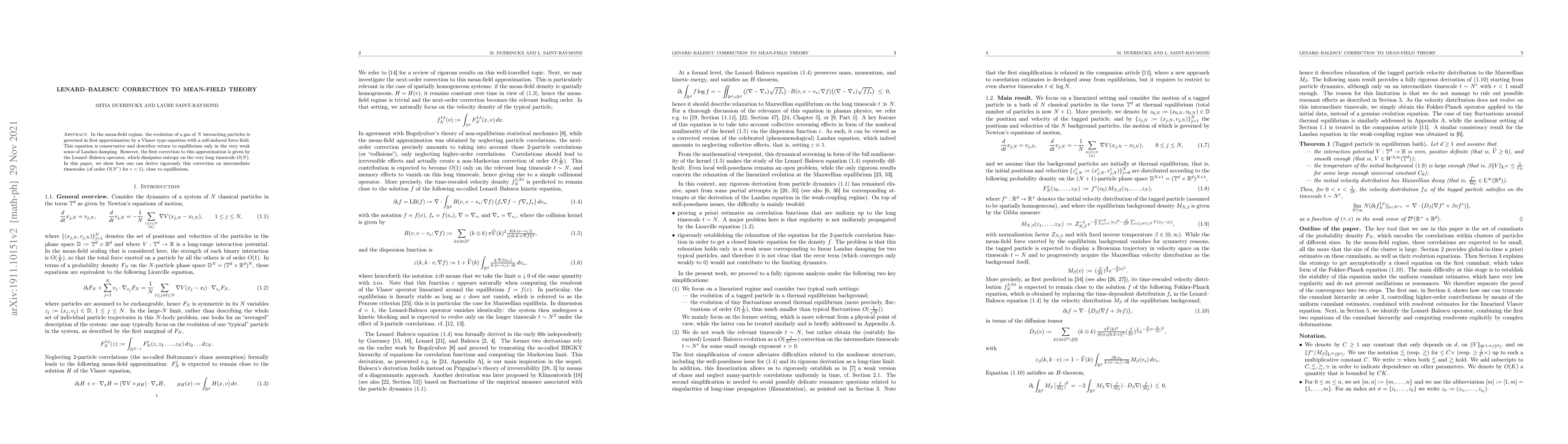 In the mean-field regime, the evolution of a gas of $N$ interacting particles is governed in first approximation by a Vlasov type equation with a self-induced force field. This equation is conservative and describes return to equilibrium only in the very weak sense of Landau damping. However, the first correction to this approximation is given by the Lenard-Balescu operator, which dissipates entropy on the very long timescale $O(N)$. In this paper, we show how one can derive rigorously this correction on intermediate timescales (of order $O(N^r)$ for $r<1$), close to equilibrium.