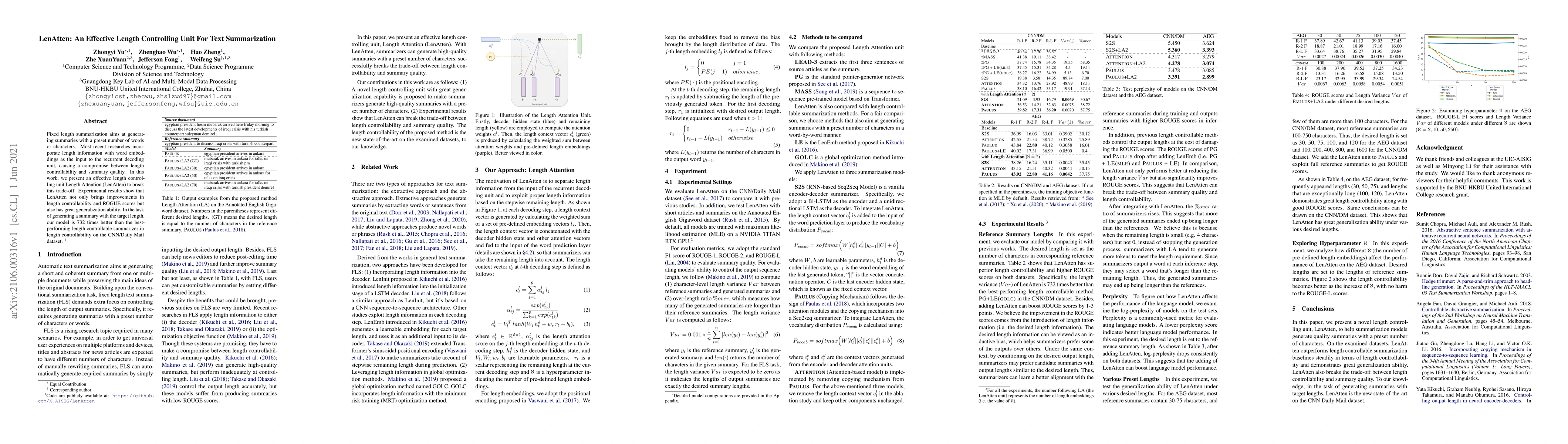 Fixed length summarization aims at generating summaries with a preset number of words or characters. Most recent researches incorporate length information with word embeddings as the input to the recurrent decoding unit, causing a compromise between length controllability and summary quality. In this work, we present an effective length controlling unit Length Attention (LenAtten) to break this trade-off. Experimental results show that LenAtten not only brings improvements in length controllability and ROGUE scores but also has great generalization ability. In the task of generating a summary with the target length, our model is 732 times better than the best-performing length controllable summarizer in length controllability on the CNN/Daily Mail dataset.