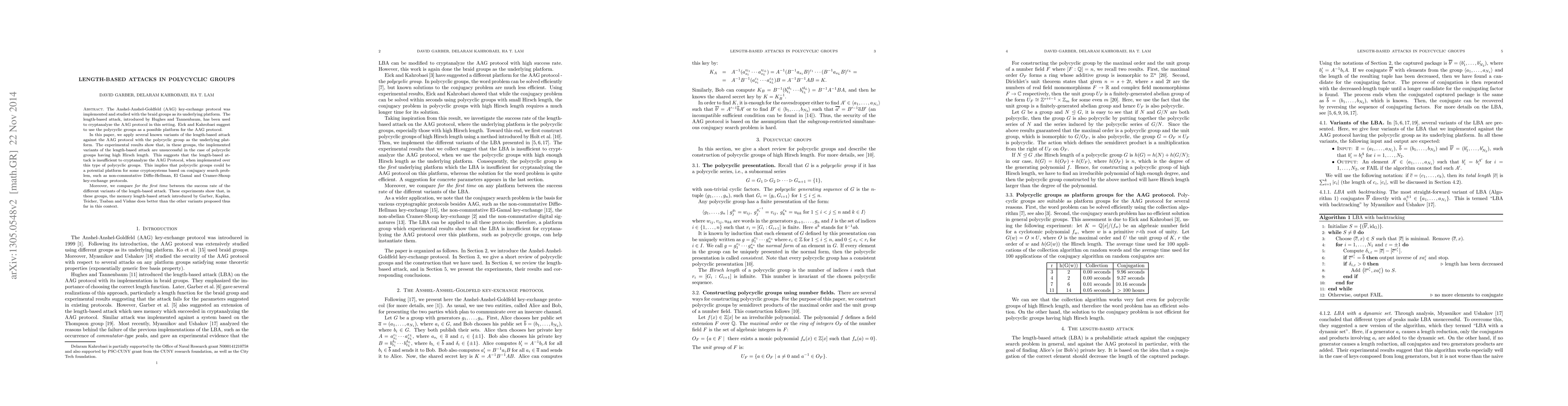 This paper demonstrates that polycyclic groups, when possessing a sufficiently high Hirsch length, can effectively resist length-based attacks against the Anshel-Anshel-Goldfeld key-exchange protocol. It concludes that polycyclic groups offer a secure foundation for various non-commutative cryptosystems.