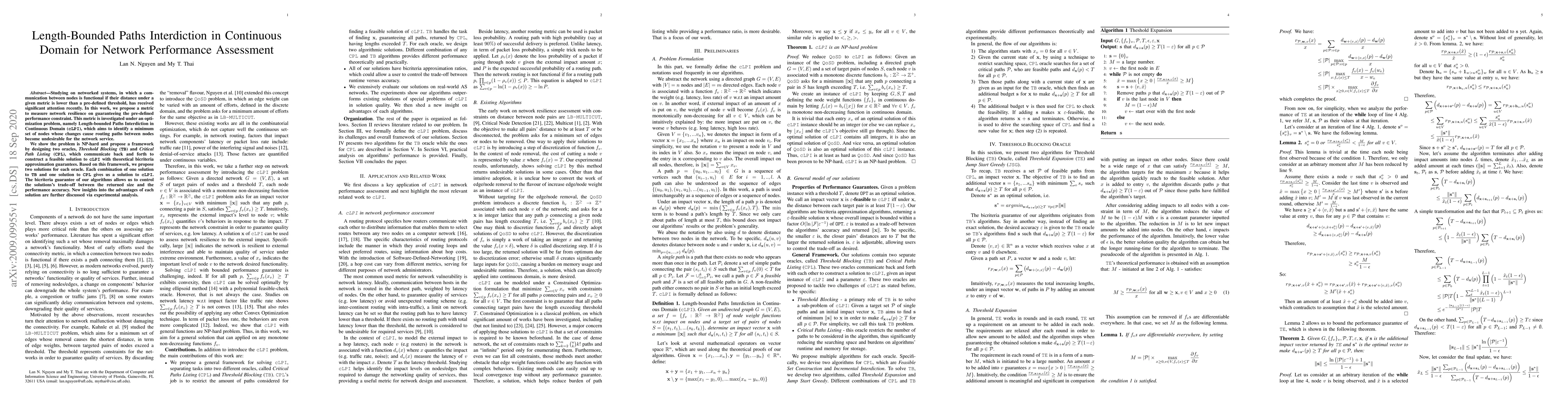 Researchers developed a framework to assess network resilience in continuous domains, proposing two solutions that balance solution size with performance accuracy. They showed the problem of Length-bounded Paths Interdiction is NP-hard and proposed algorithms with bicriteria guarantees for optimal results.