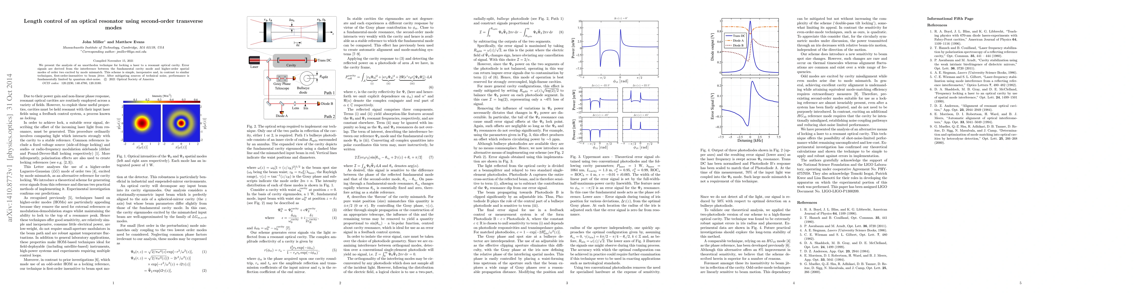We present the analysis of an unorthodox technique for locking a laser to a resonant optical cavity. Error signals are derived from the interference between the fundamental cavity mode and higher-order spatial modes of order two excited by mode mismatch. This scheme is simple, inexpensive and, in contrast to similar techniques, first-order-insensitive to beam jitter. After mitigating sources of technical noise, performance is fundamentally limited by quantum shot-noise.