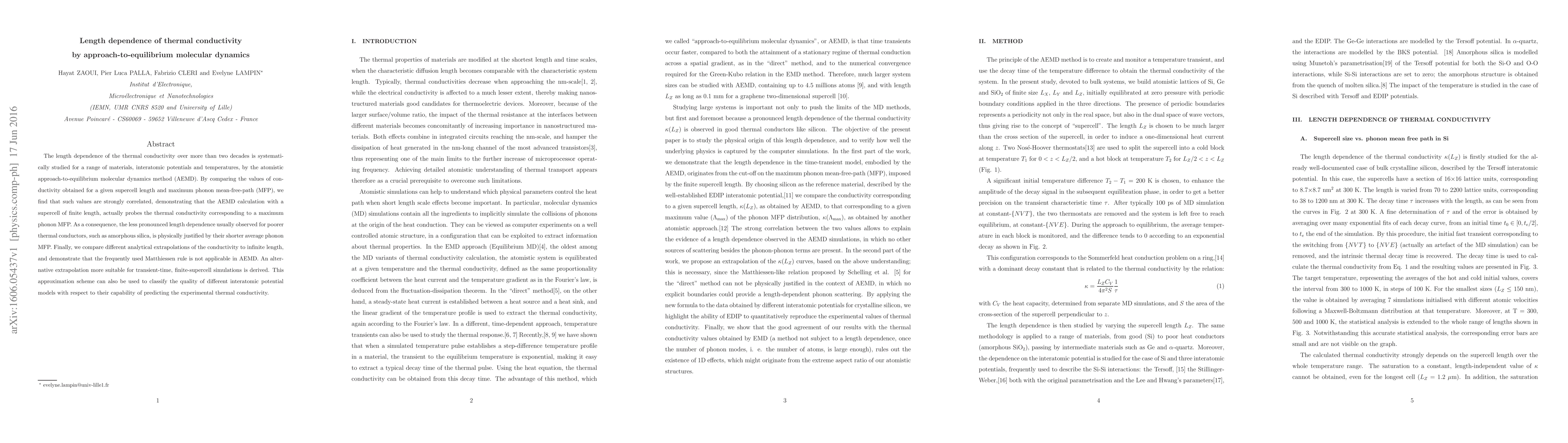 This paper investigates the length dependence of thermal conductivity using the atomistic approach-to-equilibrium molecular dynamics method (AEMD) and finds that finite supercell lengths correlate strongly with maximum phonon mean-free-path, justifying the less pronounced length dependence in poorer thermal conductors. The study also shows that the Matthiessen rule is inapplicable in AEMD, proposing an alternative extrapolation method.