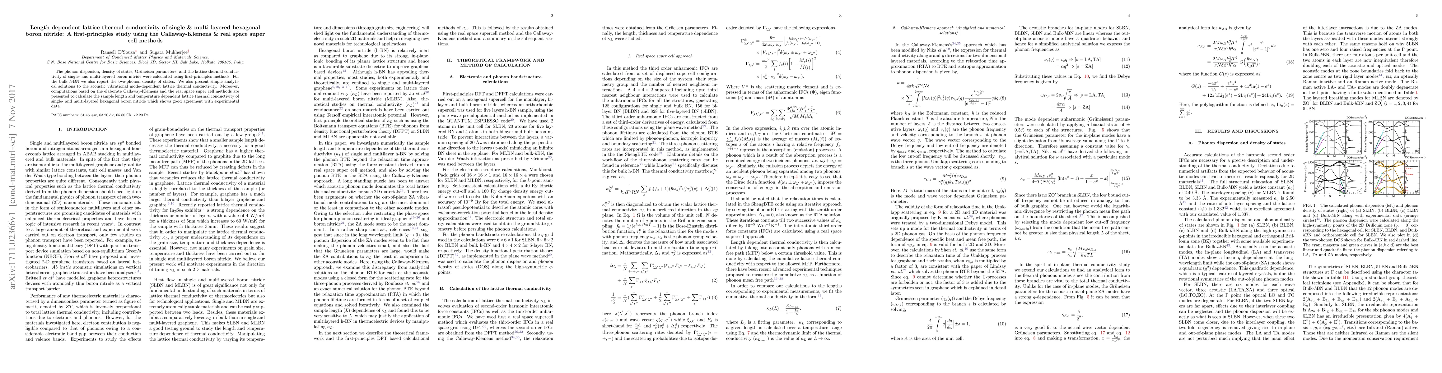 This study investigates the length-dependent lattice thermal conductivity of single and multi-layered hexagonal boron nitride using first-principles calculations and analytical models. The research provides comprehensive phonon dispersion and thermal conductivity data, showing good agreement with experimental results.
