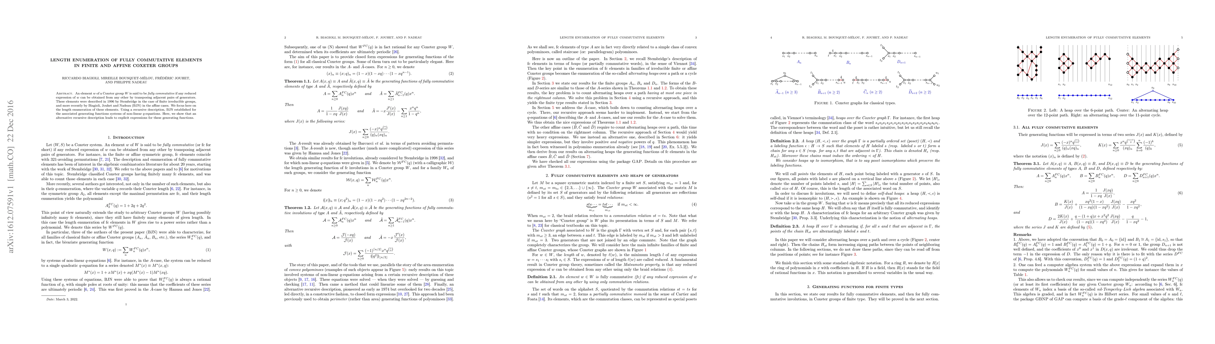 This paper investigates the enumeration of fully commutative elements in finite and affine Coxeter groups, providing explicit expressions for generating functions previously described by BJN through recursive systems of non-linear q-equations.