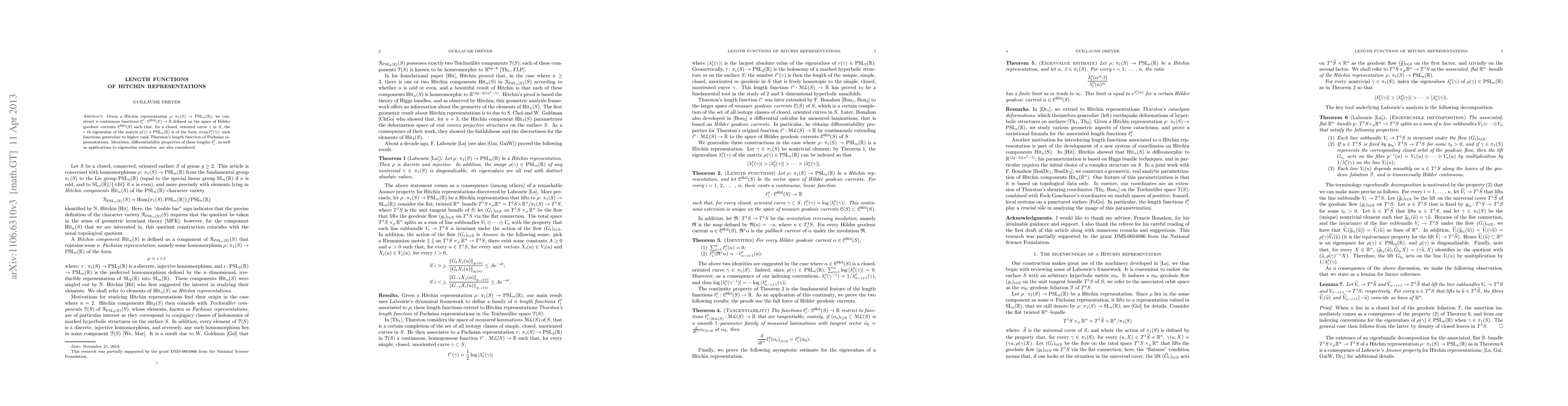 Given a Hitchin representation $\rho \colon \pi_1(S) \to \PSL_n(\mathbb{R})$, we construct $n$ continuous functions $\ell_i^\rho \colon \mathcal \CH(S) \to \mathbb{R}$ defined on the space of H\"older geodesic currents $\CH(S)$ such that, for a closed, oriented curve $\gamma$ in $S$, the $i$--th eigenvalue of the matrix $\rho(\gamma)\in \PSL_n(\mathbb{R})$ is of the form $\pm \mathrm{exp}\, \ell_i^\rho(\gamma)$: such functions generalize to higher rank Thurston's length function of Fuchsian re\presentations. Identities, diffe\rentiability properties of these lengths $\ell_i^\rho$, as well as applications to eigenvalue estimates, are also considered.