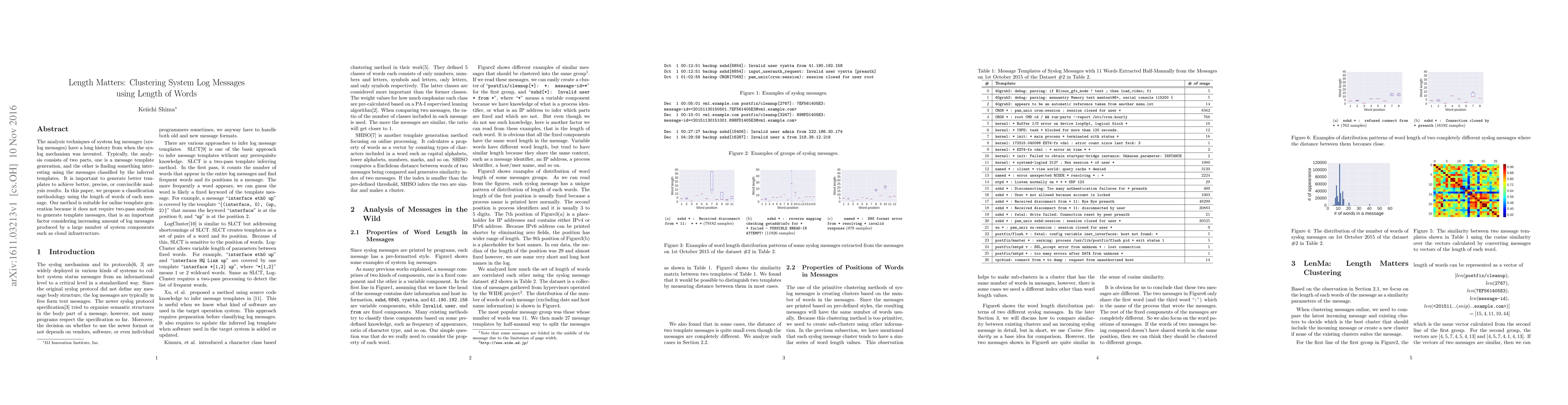 The analysis techniques of system log messages (syslog messages) have a long history from when the syslog mechanism was invented. Typically, the analysis consists of two parts, one is a message template generation, and the other is finding something interesting using the messages classified by the inferred templates. It is important to generate better templates to achieve better, precise, or convincible analysis results. In this paper, we propose a classification methodology using the length of words of each message. Our method is suitable for online template generation because it does not require two-pass analysis to generate template messages, that is an important factor considering increasing amount of log messages produced by a large number of system components such as cloud infrastructure.