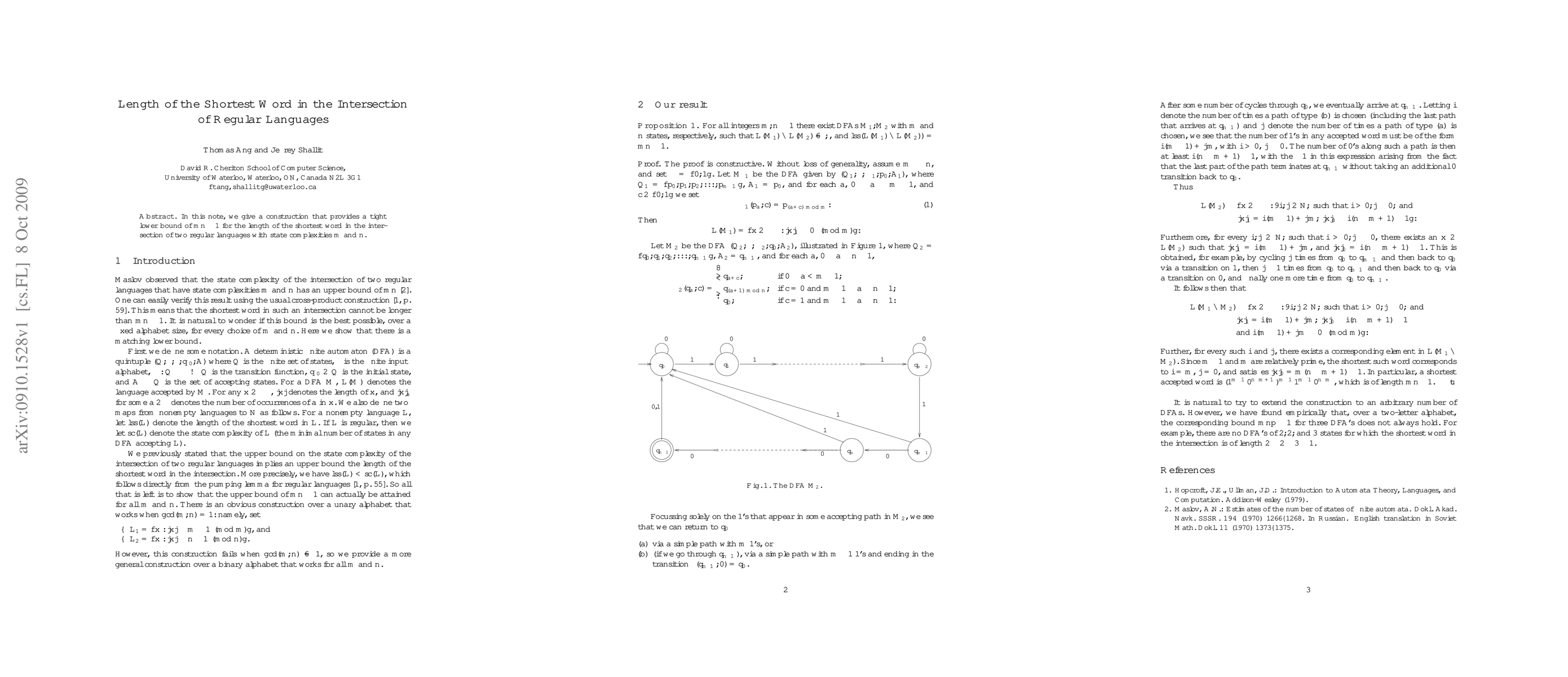 In this note, we give a construction that provides a tight lower bound of mn-1 for the length of the shortest word in the intersection of two regular languages with state complexities m and n.