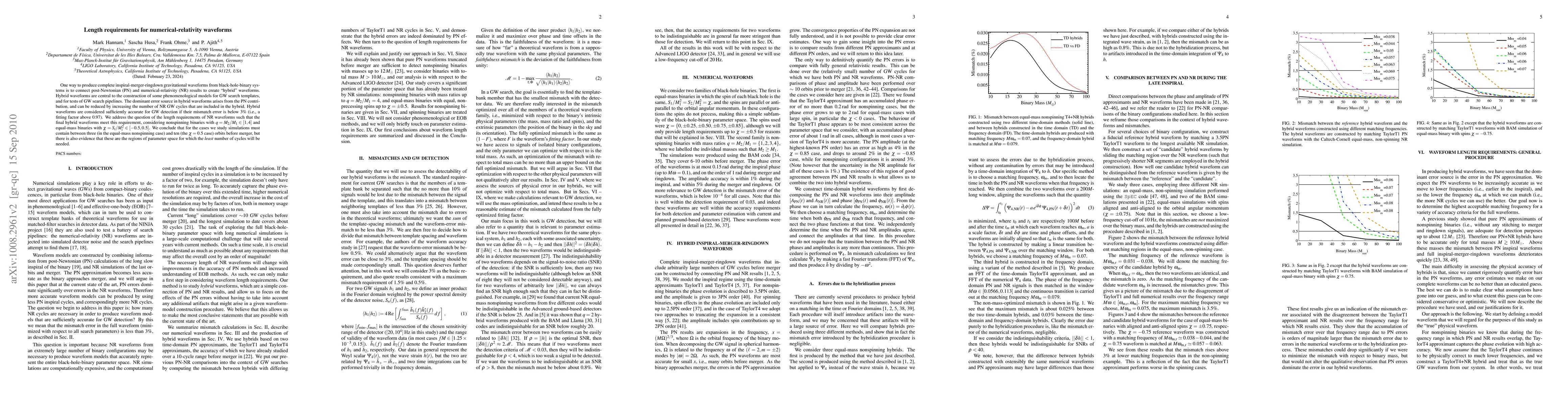 This paper investigates the necessary length of numerical-relativity waveforms to construct hybrid gravitational waveforms for black-hole binaries that meet a 3% mismatch error threshold. It finds that between three and ten orbits before merger are required, depending on the binary's mass ratio and spin parameters.
