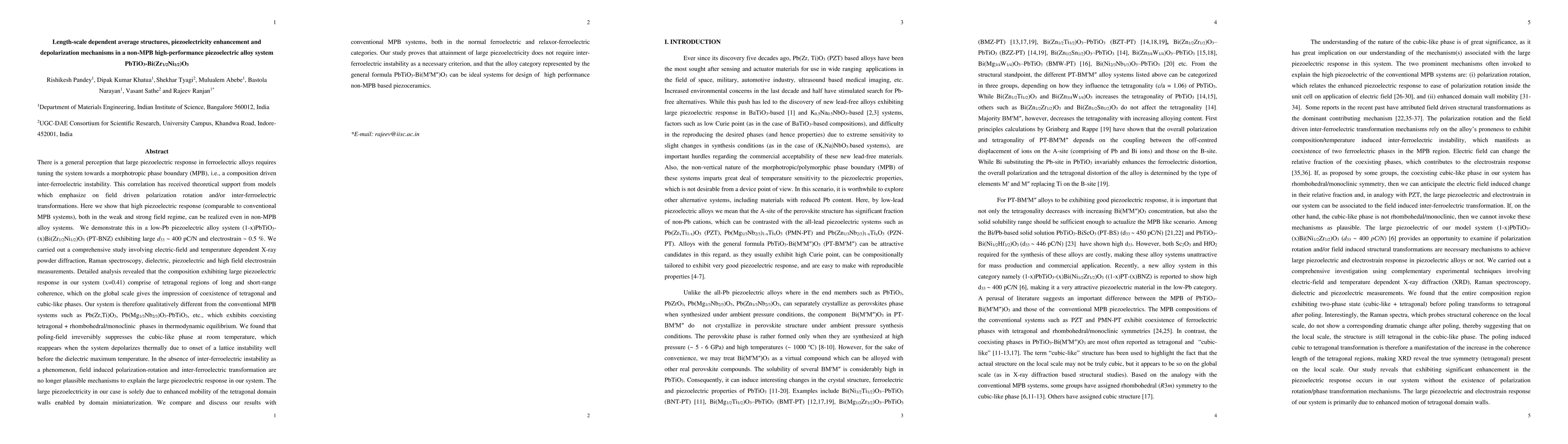This paper demonstrates that high piezoelectric response in PbTiO3-Bi(Zr1/2Ni1/2)O3 (PT-BNZ) alloy systems can be achieved without approaching a morphotropic phase boundary (MPB). The study reveals that enhanced piezoelectricity results from the mobility of tetragonal domain walls due to domain miniaturization, rather than inter-ferroelectric instability.
