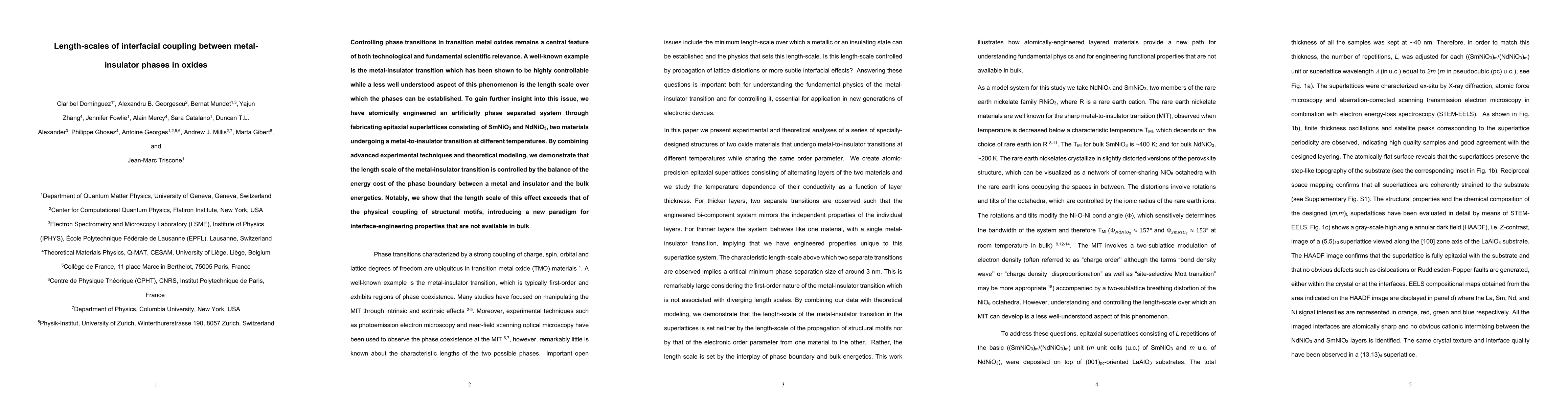 Controlling phase transitions in transition metal oxides remains a central feature of both technological and fundamental scientific relevance. A well-known example is the metal-insulator transition which has been shown to be highly controllable while a less well understood aspect of this phenomenon is the length scale over which the phases can be established. To gain further insight into this issue, we have atomically engineered an artificially phase separated system through fabricating epitaxial superlattices consisting of SmNiO$_{3}$ and NdNiO$_{3}$, two materials undergoing a metal-to-insulator transition at different temperatures. By combining advanced experimental techniques and theoretical modeling, we demonstrate that the length scale of the metal-insulator transition is controlled by the balance of the energy cost of the domain wall between a metal and insulator and the bulk energetics. Notably, we show that the length scale of this effect exceeds that of the physical coupling of structural motifs, introducing a new paradigm for interface-engineering properties that are not available in bulk