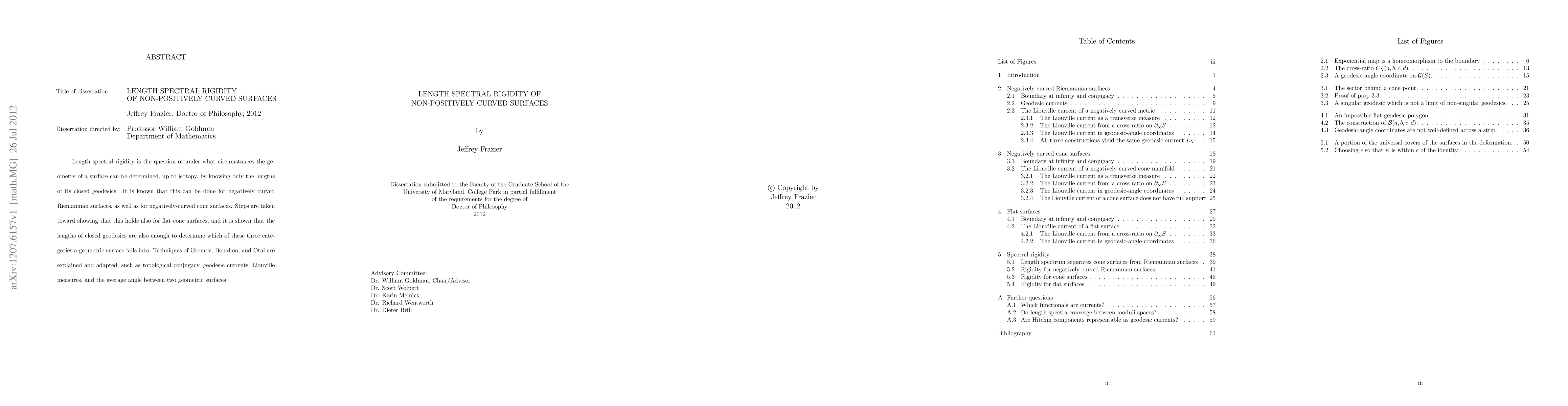 This paper explores the length spectral rigidity of non-positively curved surfaces, demonstrating that the geometry of flat cone surfaces can be determined by their closed geodesic lengths, similar to negatively curved surfaces. Techniques from Gromov, Bonahon, and Otal are adapted to show this and to distinguish between different categories of geometric surfaces based on their geodesic lengths.