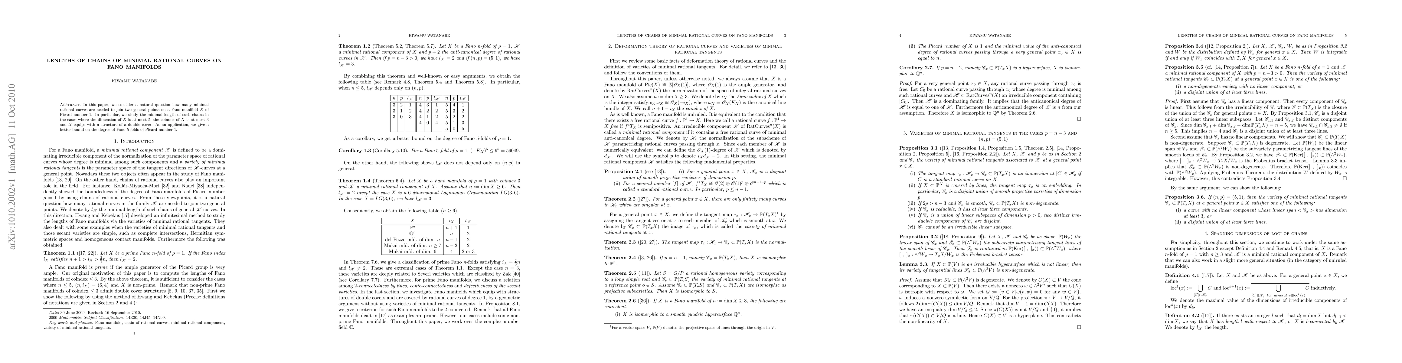 This paper investigates the minimal length of chains composed of rational curves connecting two general points on Fano manifolds with Picard number 1, focusing on dimensions up to 5 and coindex up to 3, particularly in double cover structures. The study provides a refined bound on the degree of Fano 5-folds with Picard number 1.