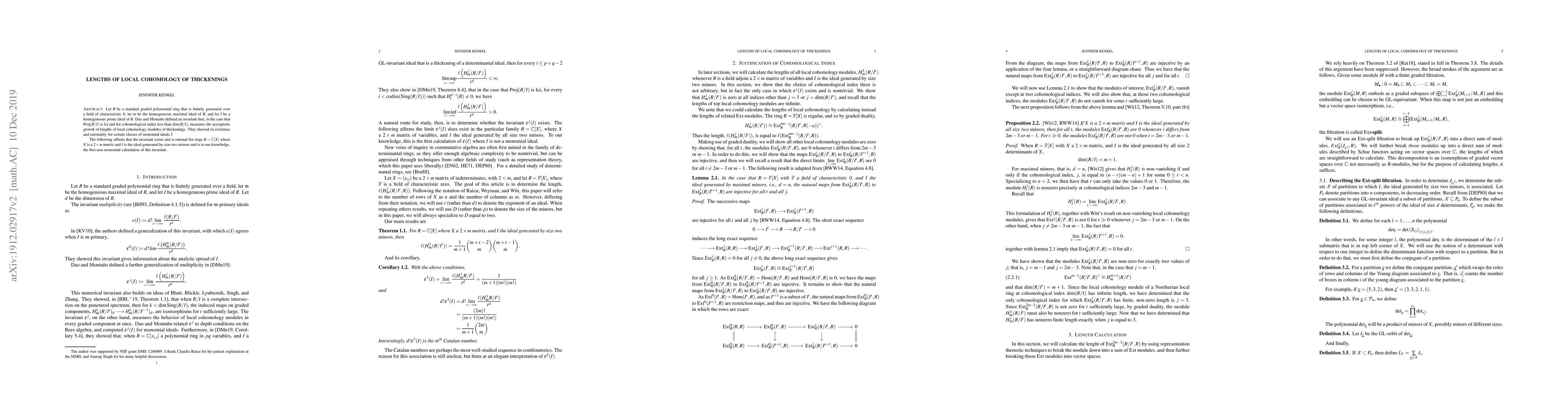 Let $R$ be a standard graded polynomial ring that is finitely generated over a field of characteristic $0$, let $\mathfrak{m}$ be the homogeneous maximal ideal of $R$, and let $I$ be a homogeneous prime ideal of $R$. Dao and Monta\~{n}o defined an invariant that, in the case that $\operatorname{Proj}(R/I)$ is lci and for cohomological index less than $\dim(R/I)$, measures the asymptotic growth of lengths of local cohomology modules of thickenings. They showed its existence and rationality for certain classes of monomial ideals $I$. The following affirms that the invariant exists and is rational for rings $R = \mathbb{C}[X]$ where $X$ is a $2 \times m$ matrix and $I$ is the ideal generated by size two minors and is to our knowledge, the first non-monomial calculation of this invariant.