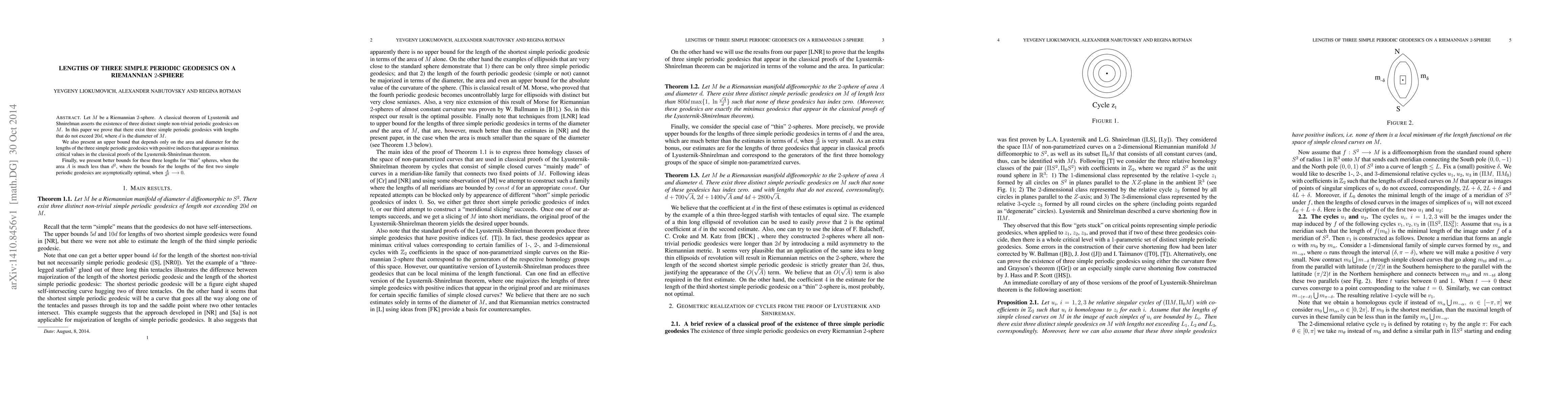 Research paper proves that three simple periodic geodesics on a 2-sphere have lengths not exceeding 20 times the sphere's diameter, with improved bounds for thin spheres.