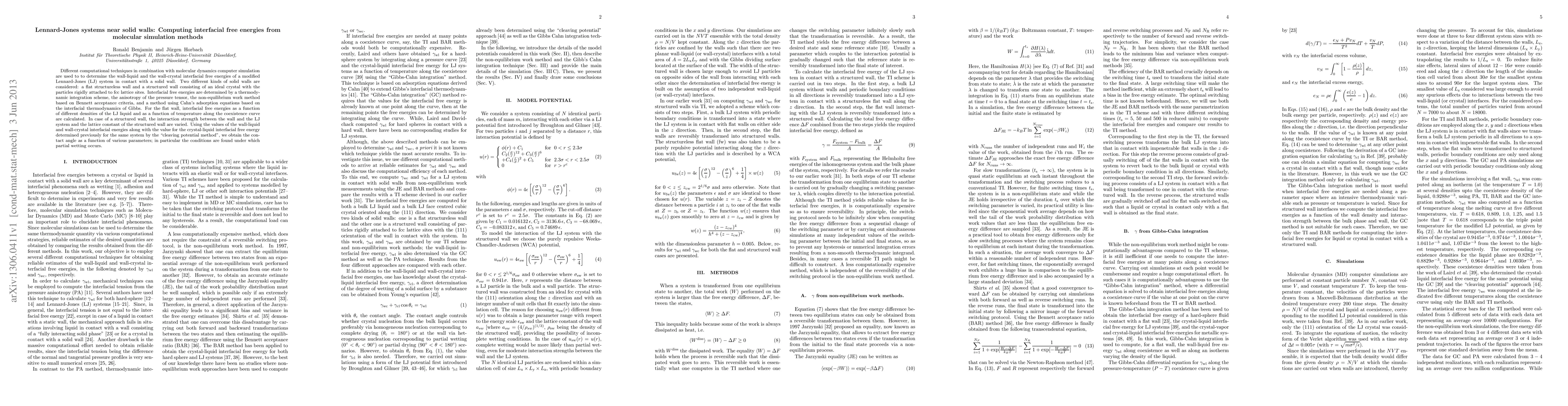 This paper employs various computational techniques to determine the interfacial free energies of a modified Lennard-Jones system near different solid walls, including flat and structured walls. The study calculates the contact angle and conditions for partial wetting using molecular dynamics simulations.
