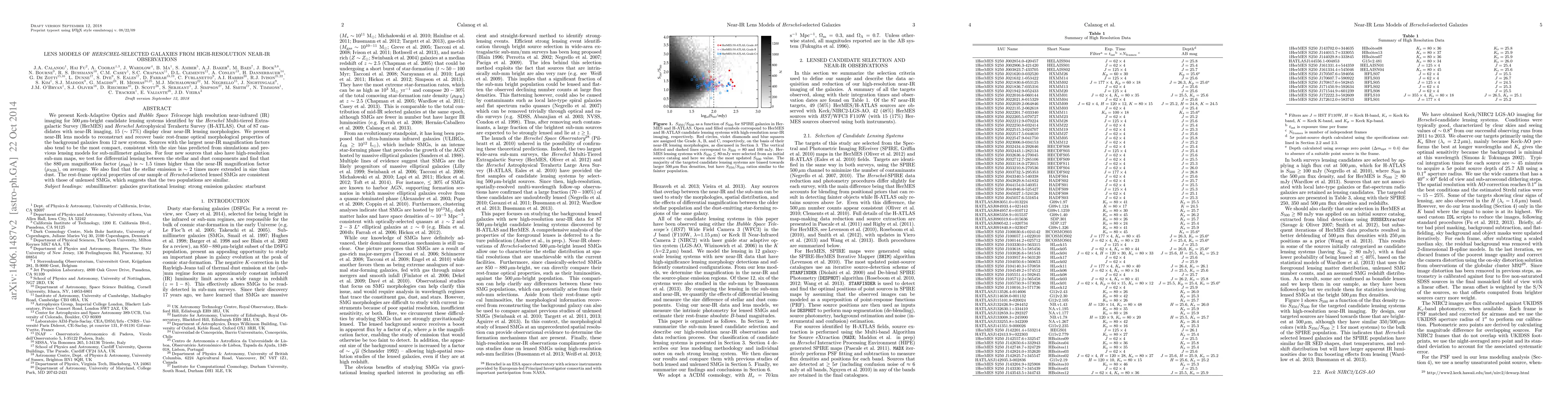 This study uses high-resolution near-IR imaging from Keck-Adaptive Optics and Hubble Space Telescope to model lensing in Herschel-selected galaxies, finding 15 out of 87 candidates with clear lensing morphologies. The research reveals that compact galaxies with high near-IR magnification factors are consistent with size bias predictions, and differential lensing indicates stellar emission is more extended than dust.