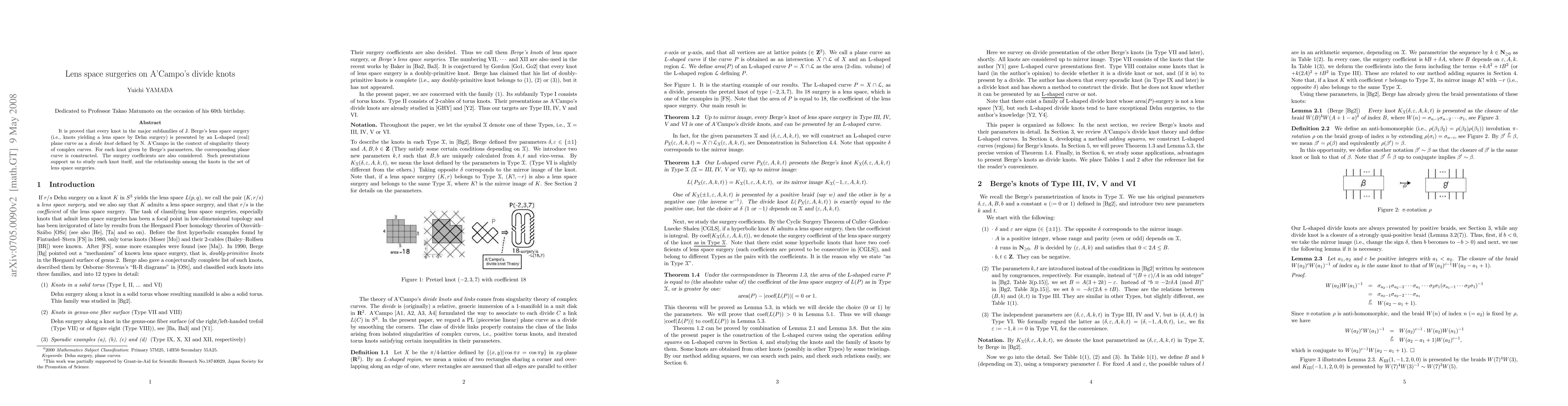 This paper proves that knots from J. Berge's lens space surgeries can be represented by L-shaped plane curves, termed "divide knots" by N. A'Campo, and constructs these plane curves for each knot. The study also examines the surgery coefficients, providing a new perspective on the relationships among these lens space knots.