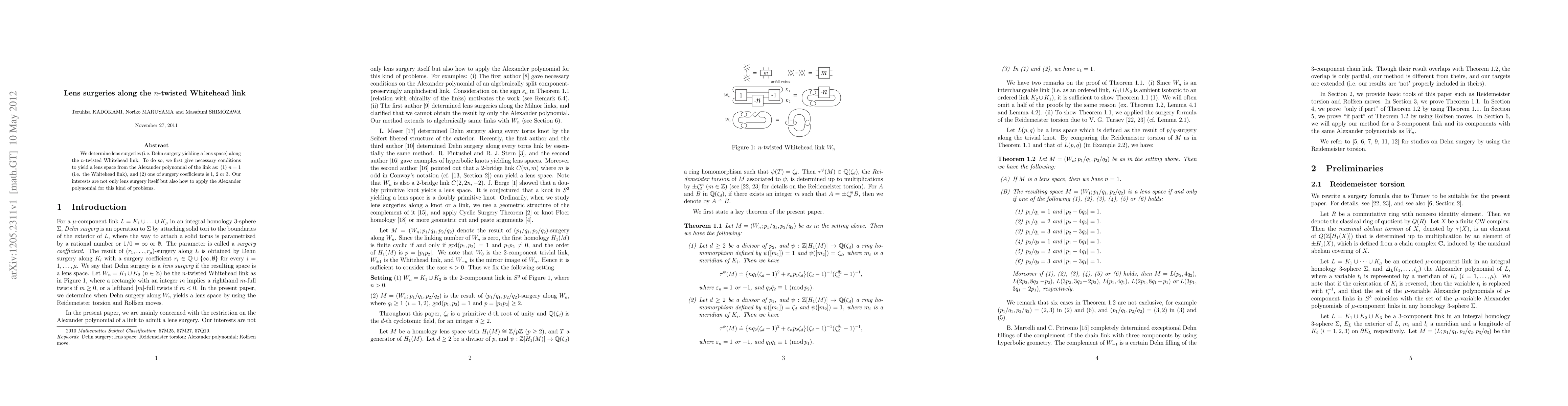 This paper investigates lens surgeries along the $n$-twisted Whitehead link, establishing conditions for yielding lens spaces, specifically when $n=1$ or when surgery coefficients are 1, 2, or 3. The study emphasizes the application of the Alexander polynomial in determining these conditions.