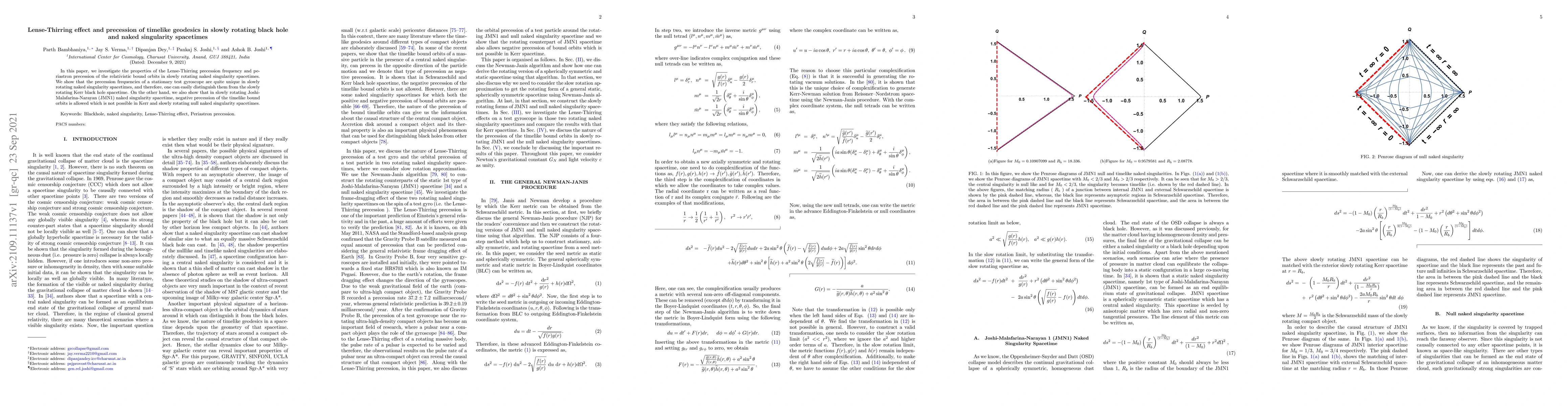This paper examines the Lense-Thirring precession and periastron precession of relativistic bound orbits in slowly rotating black hole and naked singularity spacetimes. It finds unique precession frequencies in naked singularity spacetimes, allowing distinction from Kerr black holes, and reveals that negative precession of timelike orbits is possible in certain naked singularities but not in Kerr spacetimes.