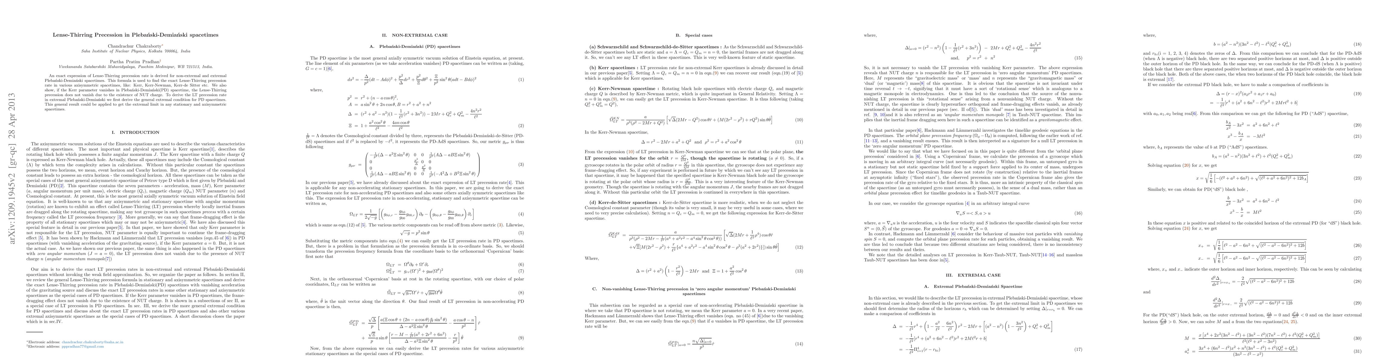 The paper derives an exact expression for Lense-Thirring precession rate in both non-extremal and extremal Pleba\'nski-Demia\'nski spacetimes, applying it to various axisymmetric spacetimes like Kerr, Kerr-Newman, and Kerr-de Sitter. Notably, it reveals that even when the Kerr parameter is zero, precession persists due to NUT charge.