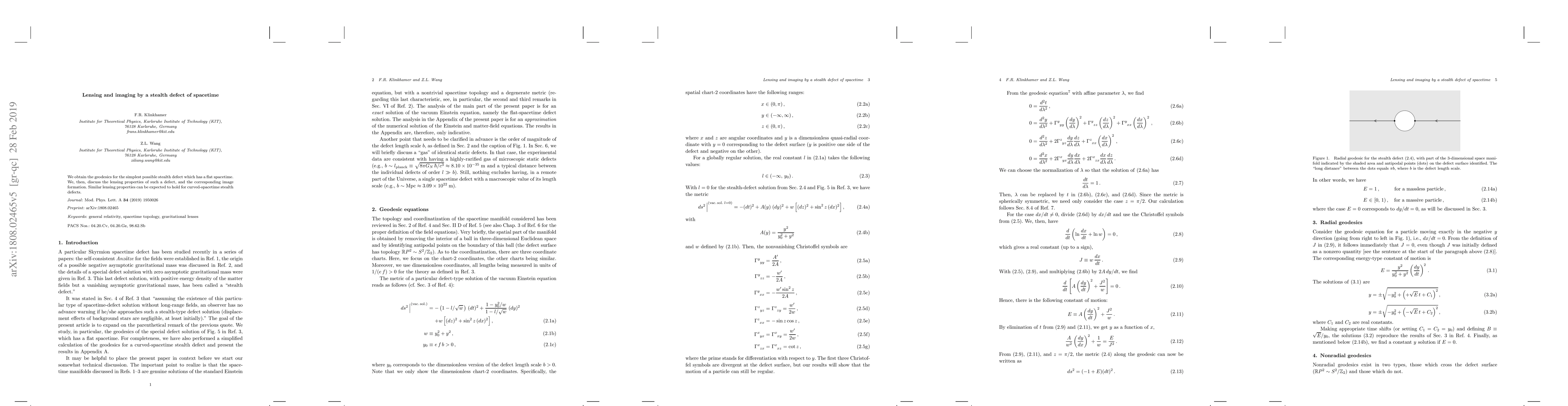 Researchers found that a 'stealth defect' in spacetime can create lensing effects similar to those seen with black holes, allowing for the formation of images from distant objects. The study suggests that such effects could be observed in curved-spacetime environments as well.