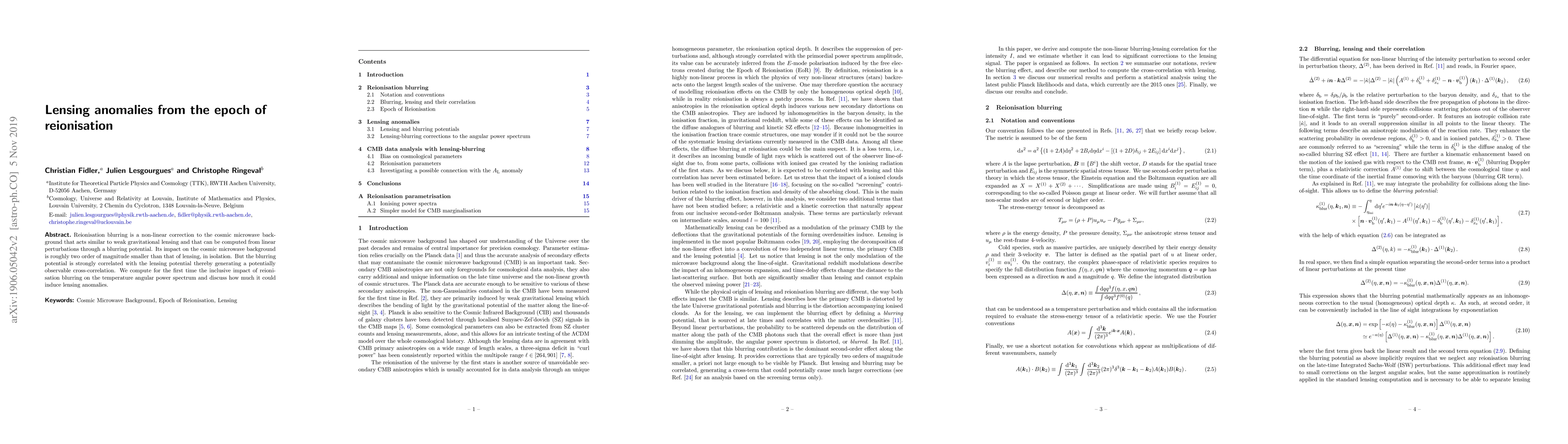 Reionisation blurring is a non-linear correction to the cosmic microwave background that acts similar to weak gravitational lensing and that can be computed from linear perturbations through a blurring potential. Its impact on the cosmic microwave background is roughly two order of magnitude smaller than that of lensing, in isolation. But the blurring potential is strongly correlated with the lensing potential thereby generating a potentially observable cross-correlation. We compute for the first time the inclusive impact of reionisation blurring on the temperature angular power spectrum and discuss how much it could induce lensing anomalies