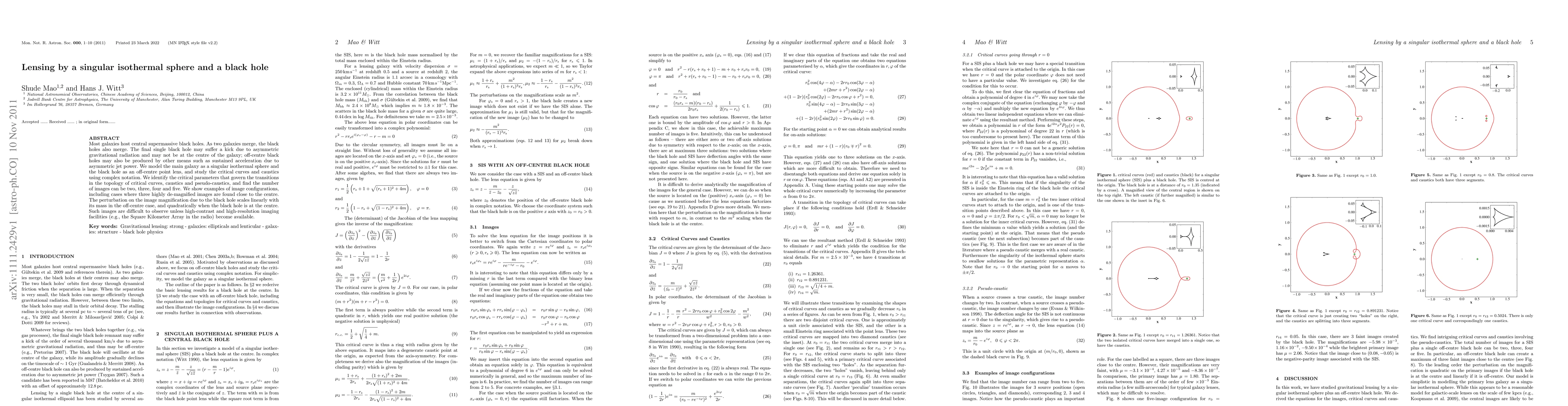Most galaxies host central supermassive black holes. As two galaxies merge, the black holes also merge. The final single black hole may suffer a kick due to asymmetric gravitational radiation and may not be at the centre of the galaxy; off-centre black holes may also be produced by other means such as sustained acceleration due to asymmetric jet power. We model the main galaxy as a singular isothermal sphere and the black hole as an off-centre point lens, and study the critical curves and caustics using complex notation. We identify the critical parameters that govern the transitions in the topology of critical curves, caustics and pseudo-caustics, and find the number of images can be two, three, four and five. We show examples of image configurations, including cases where three highly de-magnified images are found close to the centre. The perturbation on the image magnification due to the black hole scales linearly with its mass in the off-centre case, and quadratically when the black hole is at the centre. Such images are difficult to observe unless high-contrast and high-resolution imaging facilities (e.g., the Square Kilometer Array in the radio) become available.