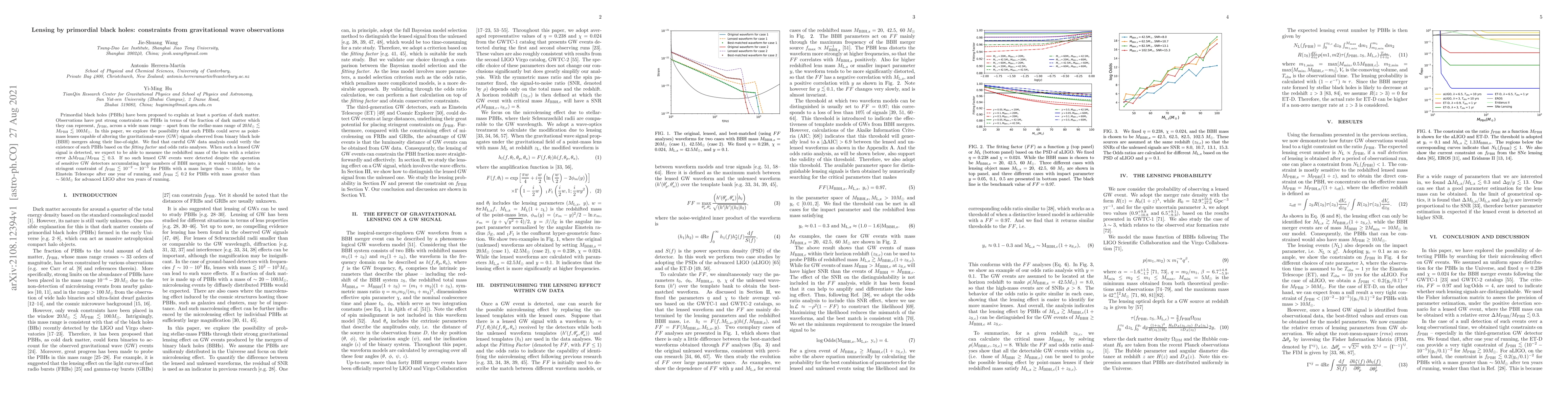 A study explores the possibility of primordial black holes (PBHs) acting as point-mass lenses in binary black hole mergers, potentially altering gravitational wave signals, and finds that detection could constrain PBH masses and dark matter fractions.